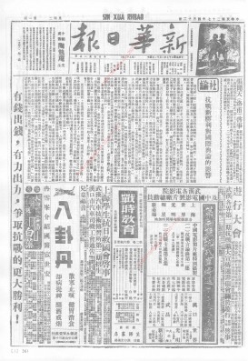 首页抗日战争图书馆战时报刊抗战时期的《新华日报》《新华日报》1938年4月内容列表