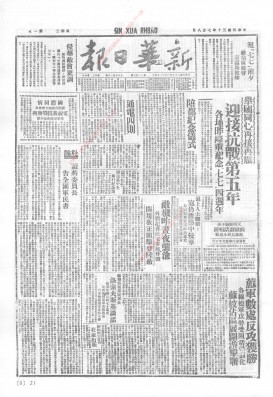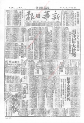首页抗日战争图书馆战时报刊抗战时期的《新华日报》《新华日报》1941年7月内容列表