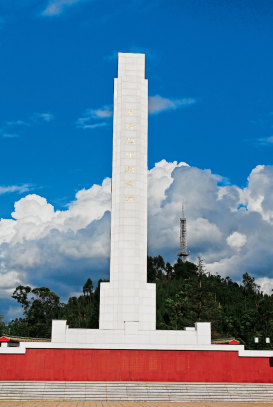 1927年春,一批年轻的共产党人来到滇中玉溪这个灾难深重的地方, 建立地下党组织,传播共产主义思想,开展农民运动和反帝反封建斗争,播 撒革命火种。抗日战争时期,玉溪各族人民组织各种抗日救亡活动,慷慨捐款捐物,踊跃参军参战。抗日将士英勇杀敌,视死如归,用热血和生命奏响 了悲壮激昂的《义勇军进行曲》。解放战争时期,玉溪各县建立革命据点, 开展地下斗争,发动武装起义,建立游击根据地,滇桂黔边纵队滇中独立团 和人民群众积极配合南下野战军与敌人浴血奋战,推翻了国民党在玉溪的反 动统治,最终取得了革命斗争的胜利和各族人民的解放。1950年初,不甘心 失败的国民党残余与农村封建势力相互勾结,发动反革命武装暴乱,刚刚赢 得和平的人民又陷入灾难。玉溪党政军民齐心协力,奋勇剿匪,取得了征粮 剿匪斗争的胜利,巩固了新生的人民政权。在社会主义革命和建设时期,玉 溪许多优秀儿女为保家卫国,保卫边疆,维护正义,保护人民生命财产安全 英勇牺牲,以赤胆忠诚为人民赢得幸福安宁。玉溪有1500多名英雄儿女为中国革命和建设献出了宝贵的生 命,还有许多人甚至没有留下 姓名。为纪念革命先烈,玉溪 于1956年4月,在南教场(现高 快客运站内)始建革命烈士纪 念碑。1984年12月,迁建至东 风公园水库大坝北端的张家山 后,又于2009年9月25日开工, 2010年4月2日竣工,再迁建于 红塔区金钟山上。