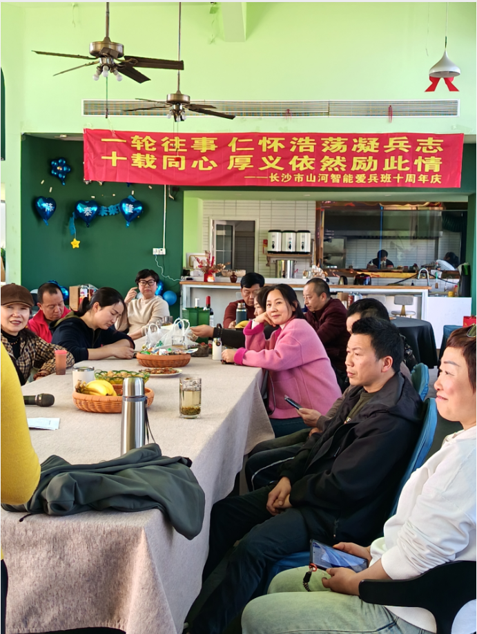 据悉,长沙山河智能爱兵班自组建以来,始终坚守“尊崇英雄、关爱抗战老兵”的初心,在公益道路上步履铿锵。至今已坚守十余年,用点滴行动践行公益承诺,凝聚起一支有温度、有担当的志愿队伍。目前,该爱兵班群共有49名成员,志愿者涵盖退休人员、在职工作者、企业经营者等多个群体,不同身份的志愿者因共同的爱心使命相聚,用微光汇聚暖流,为抗战老兵们撑起一片温暖天地。