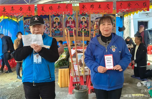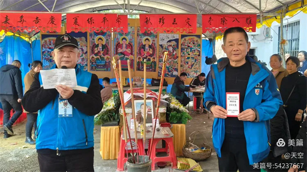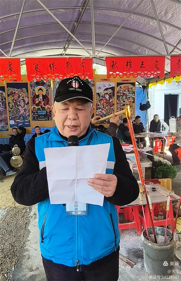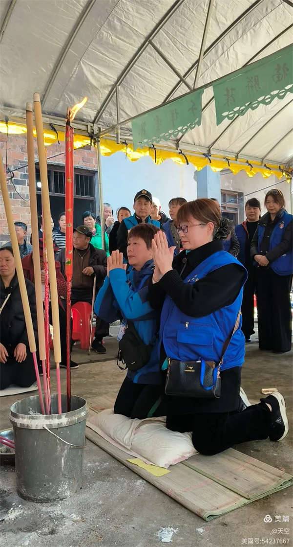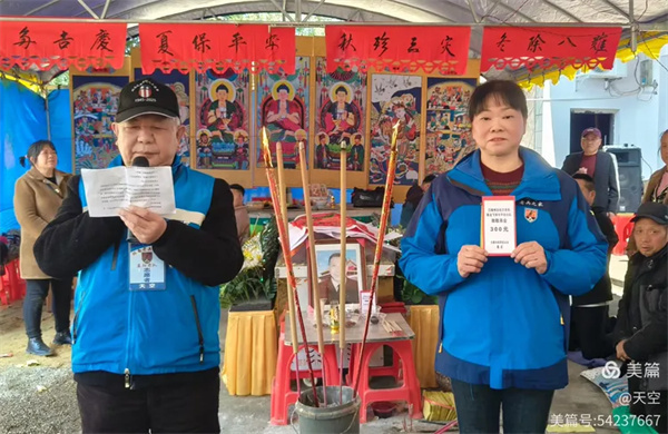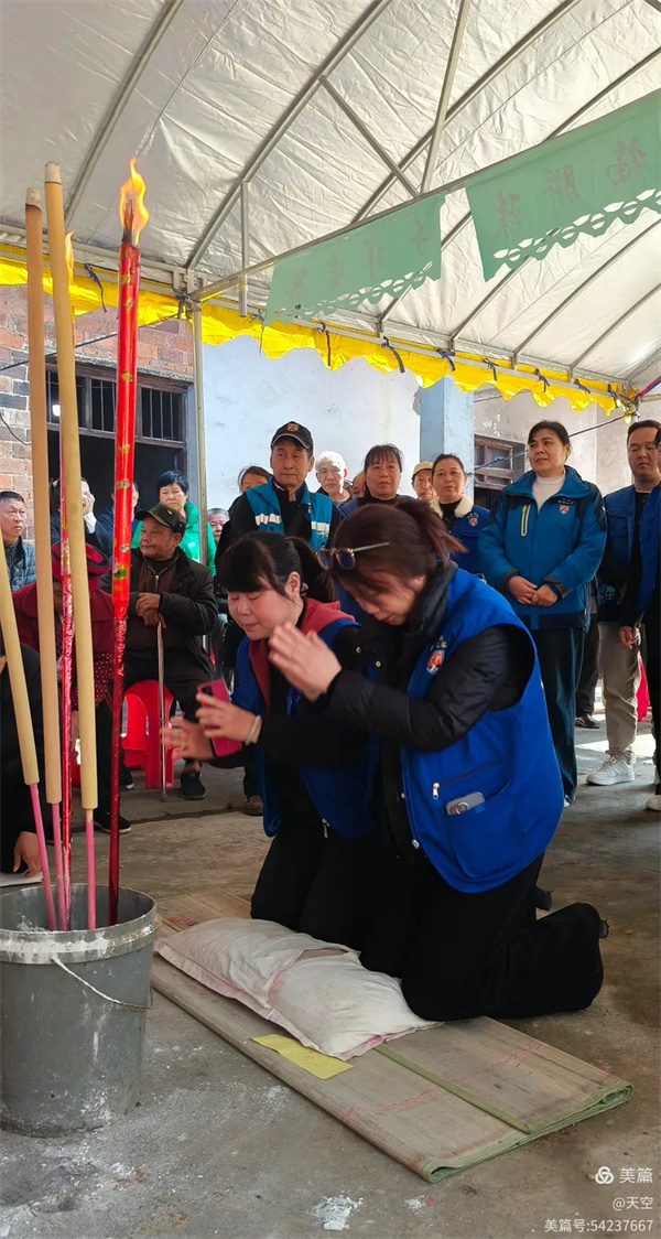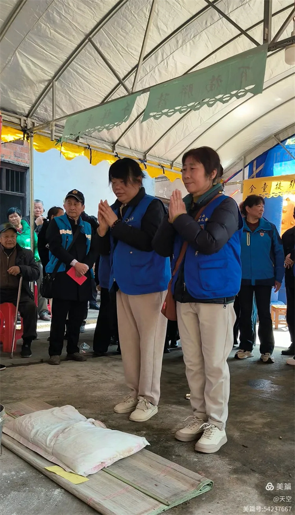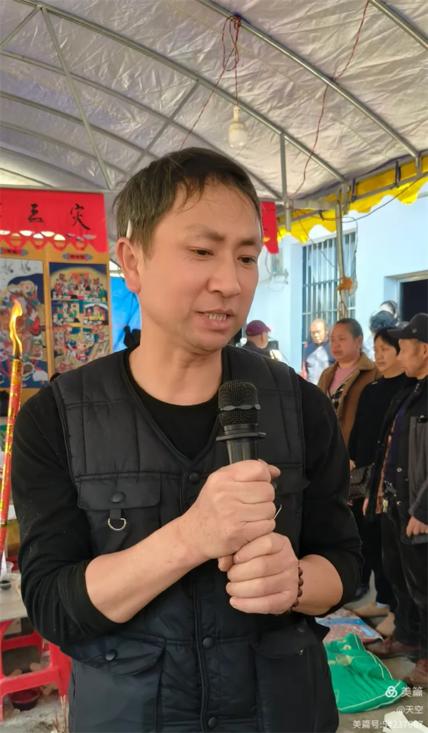 看到村公路旁边搭的拱门及家中的灵棚和棺材,儿孙们为陈爷爷守灵4天,我们看了感到十分的欣慰,在灵堂前挂好横幅挽联后。为陈爷爷举行追思告别会,由天空主持,理事盼盼致悼词: