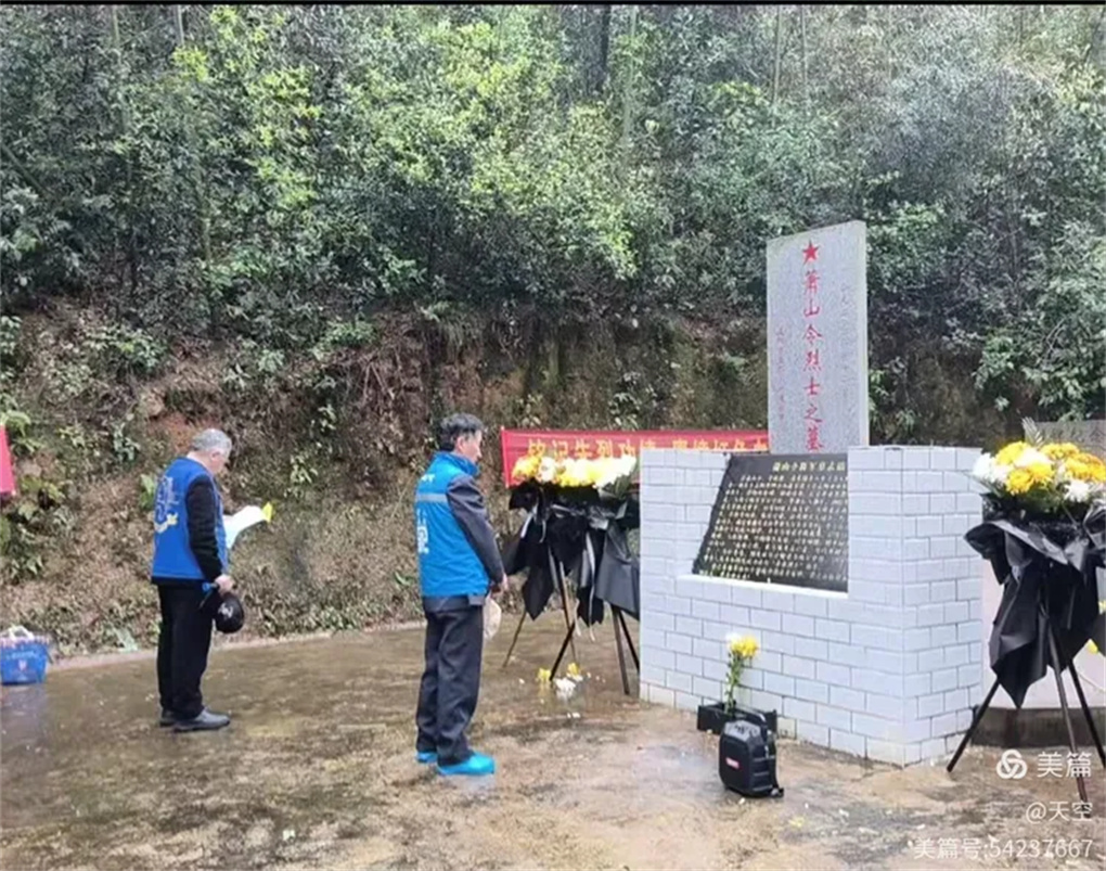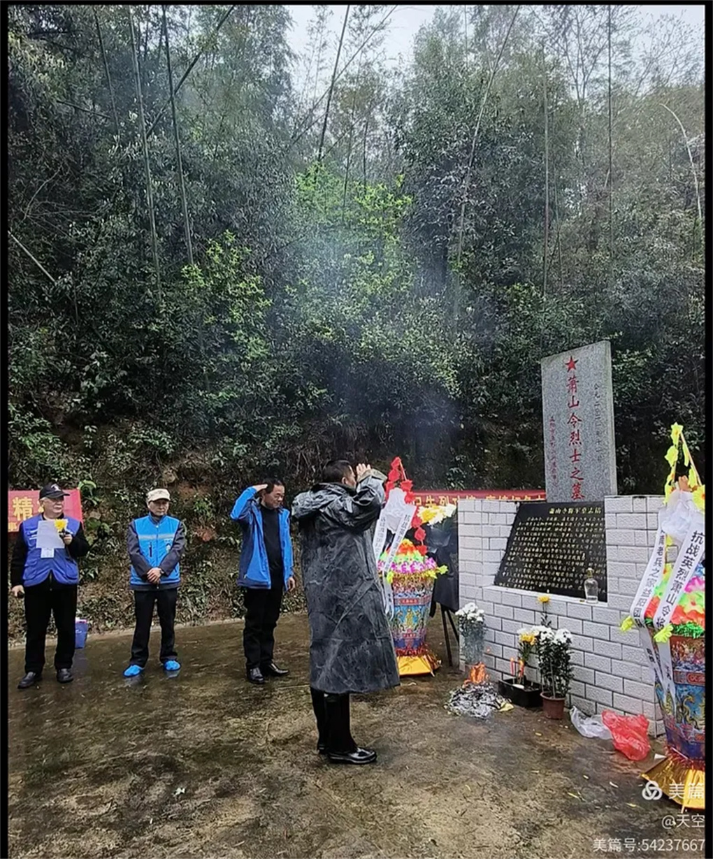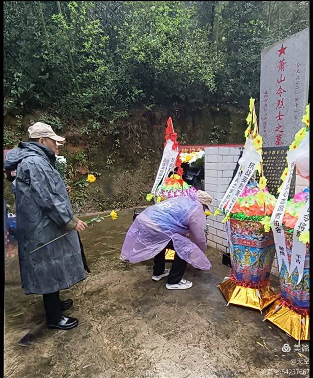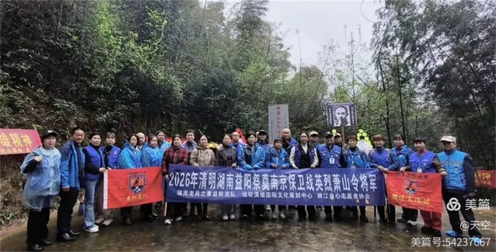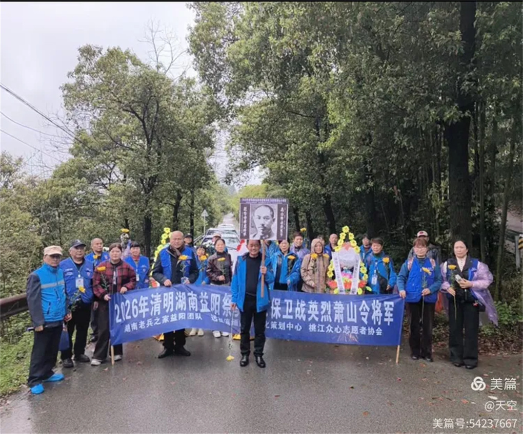 2026年4月3日上午,一年又是清明时,缅怀忠魂寄哀思。湖南老兵之家益阳团队携手远征滇缅国际文化策划中心、桃江县众心志愿者协会一行30人,乘坐6台小车,冒雨前往益阳市赫山区沧水铺镇鱼形山水库环湖公路左侧山上。在抗日英烈萧山令将军墓地,举行“2026年清明湖南益阳祭奠南京保卫战英烈萧山令将军”。每人手持一束黄菊,怀着无比崇敬的心情,聚集在萧山令将军墓碑前,深切缅怀为国捐躯的南京保卫战益阳籍抗战英烈萧山令将军。深切感受到英烈的灵魂和精神正熠熠生辉。这朵朵菊花象征着崇高的品质和无私的精神,也寄托着我们深深的哀思,更代表着我们后辈无限的敬仰,英烈的爱国精神必将永放光彩。英烈的浩气与青山同在,与大地永存!将军垂青千古!感谢益阳花卉商场曹锋先生捐助活动所用的菊花!感谢冯霞、何光辉、青青、郑哥、胡晓斌、钟乐六位开爱心免费车接送志愿者往返!清明祭英烈,益阳团队在行动!