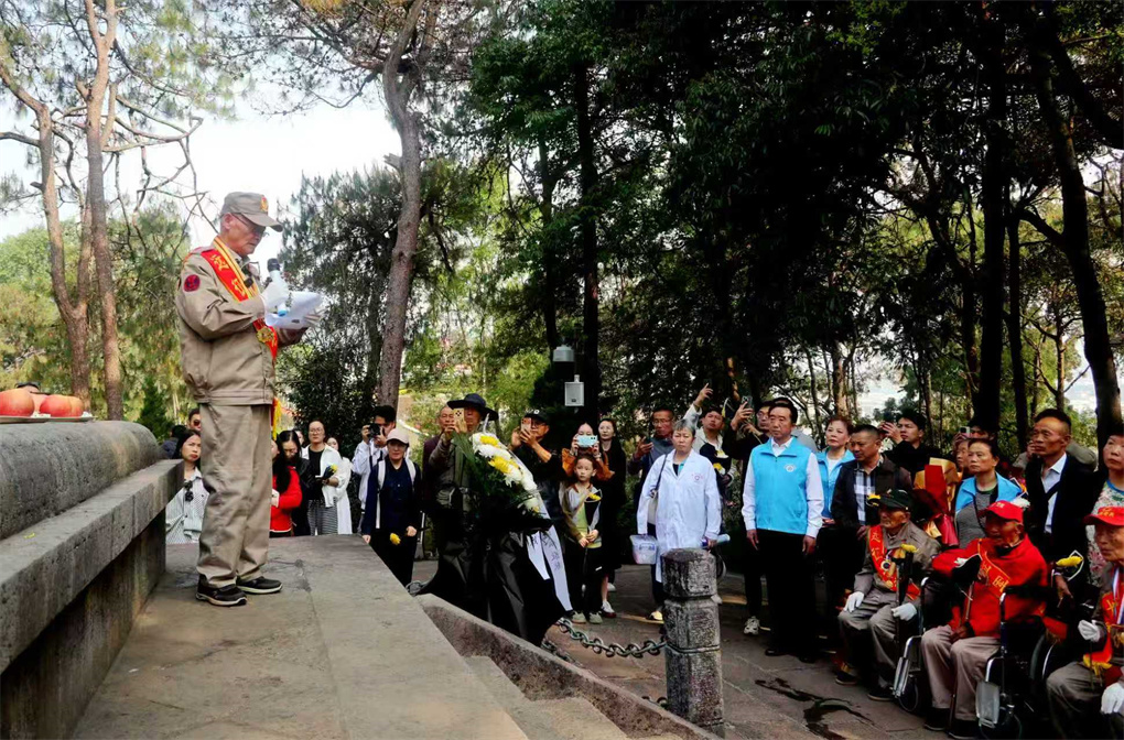 老兵廖沛林的声音几度哽咽:“战友们,我们8位兄弟相约来看你们了,魂兮归来吧!你们在这里长眠了80多年,我们没有忘记你们,中国人民记得你们。愿你们保佑中华民族越来越强大,再也不受外敌侵略。你们安息吧!”