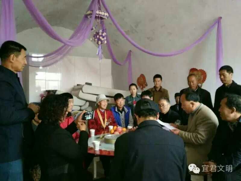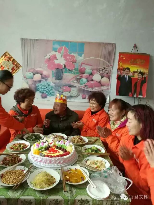 在小元的带领下为贺席德老人九十二生日祝寿。