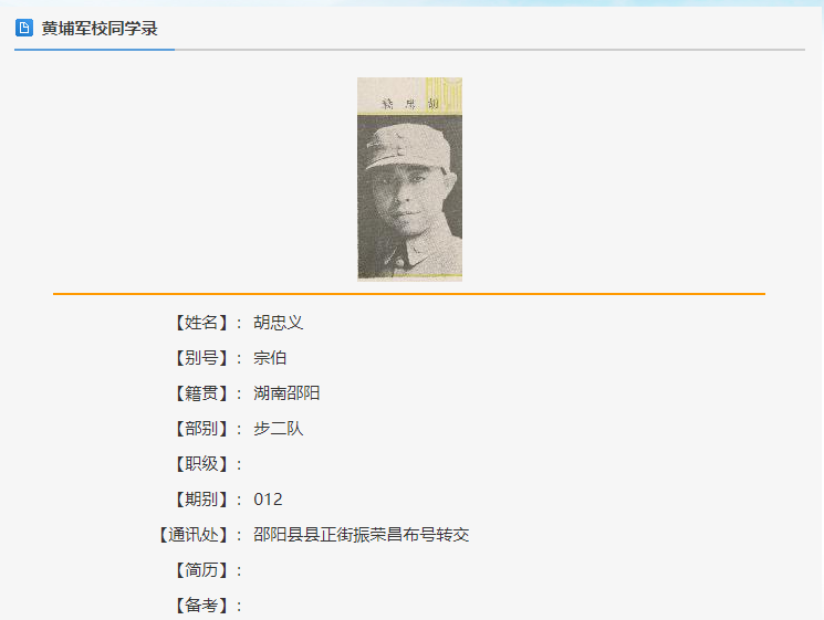 舅舅告诉我。当年与外公一同当兵的,还有姑外公(外公的亲妹夫)唐泽仁,以及外公的侄儿胡相治。两岸三通后,姑外公曾多次回大陆探亲,后来定居大陆,2010离世;而胡相治至今健在,定居于台北。通过多方问询与核实,我终于得知,外公当年考取了黄埔军校第十二期步兵科,所用的名字是“胡忠义”——这便是同学录中查不到“胡安呈”的缘由。