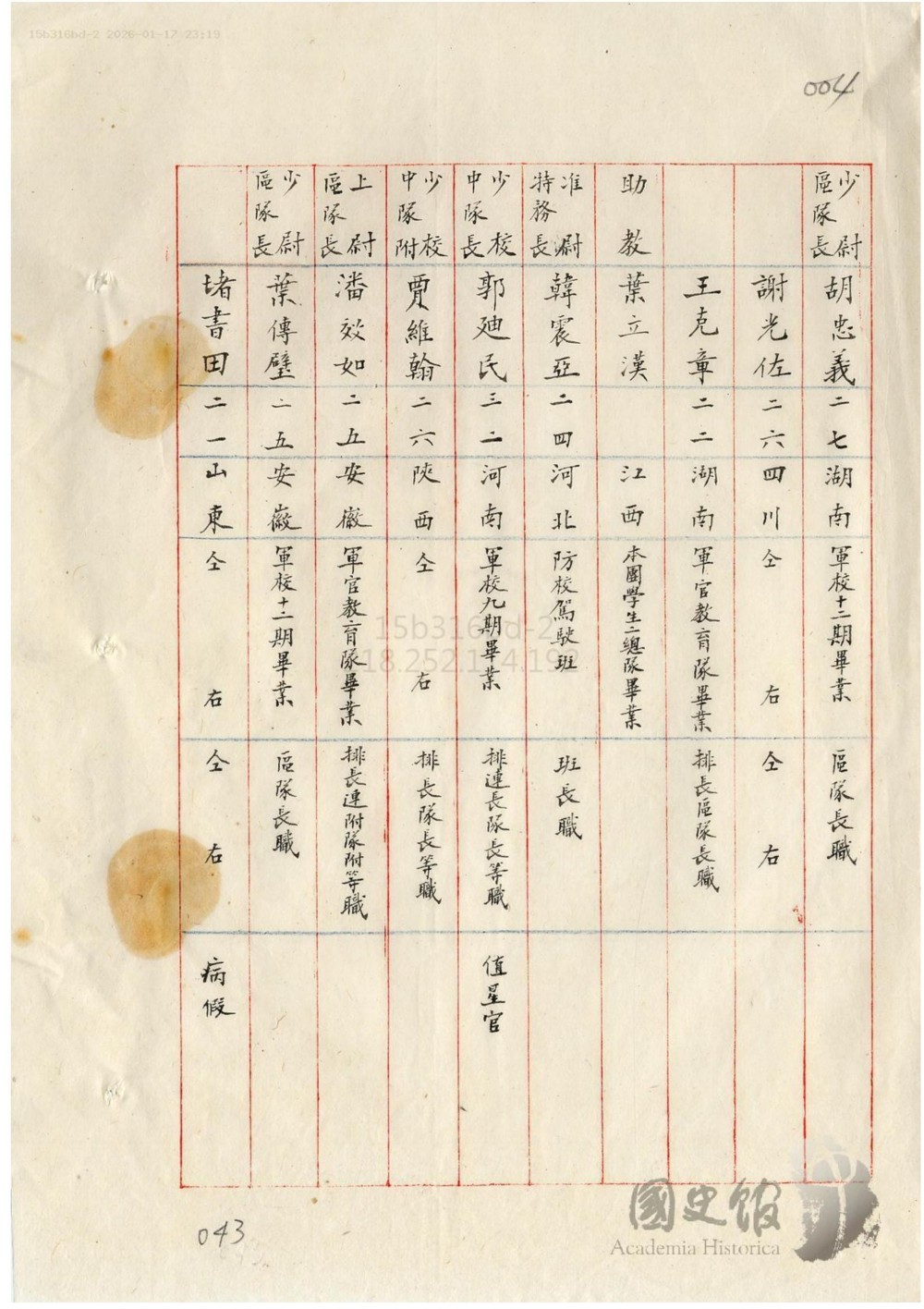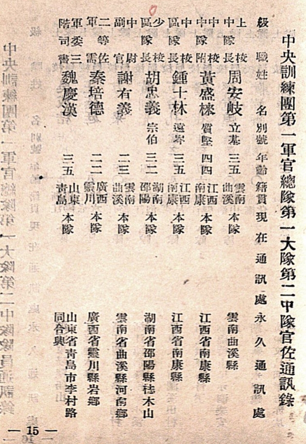 《中央训练团第一军官总队第一大队第二中队官佐通讯录》
