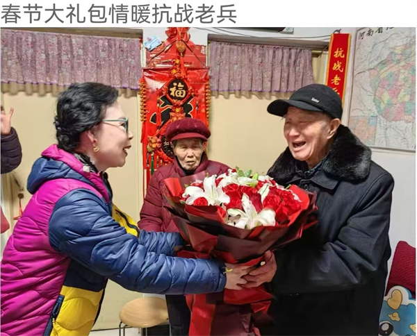 同时河南其他地市志愿者同时开展为12对老兵夫妇献鲜花和为抗战老兵送礼包活动。