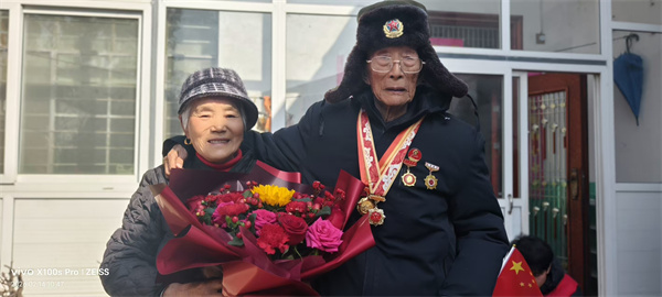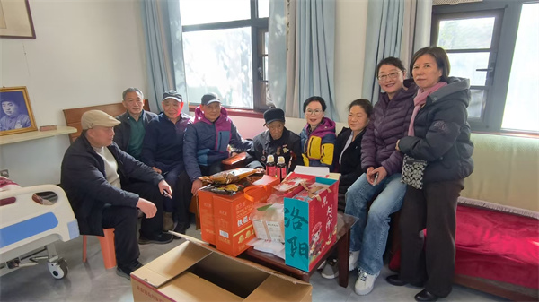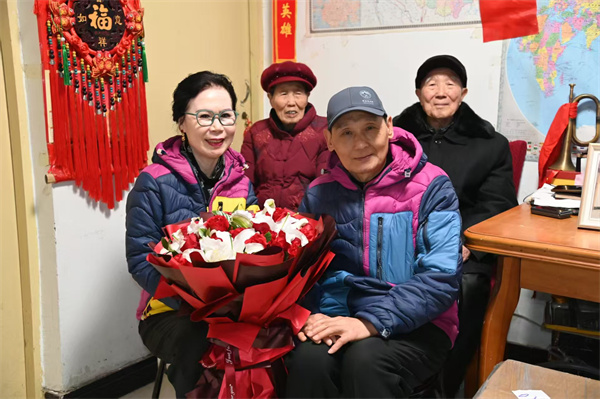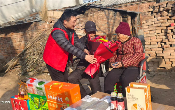 志愿者们驱车十几余公里,来到位于叶县盐都街道明鑫小区的史居义老人家中。今年98岁的史居义,15岁便加入新四军,先后参与抗日战争、解放战争及抗美援朝战争,战功卓著。2024年,他在首届“河南楷模”评选中荣获首批“河南楷模”称号。在老人家中,“鹰城最美退役军人”侯国华与志愿者们一同为史居义夫妇献上寓意美好爱情和吉祥的玫瑰百合鲜花,并送上装有铁棍山药等十余种年货的爱心大礼包。两位老人感动不已,连连道谢。志愿者们大多曾多次登门看望,大家围坐一起,与老人促膝交谈、嘘寒问暖,屋内暖意融融,笑语不断。