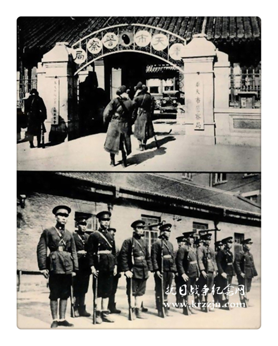 1931年9月18日傍晚,日本关东军虎石台独立守备队第2营第3连离开原驻地虎石台兵营,沿南满铁路向南行进。夜22时20分左右中国人尸体放在现场,作为东北军破坏铁路的证据,诬称中国军队破坏铁路并袭击日守备队。图为伪满新京警察署出动警力镇压东北民众。