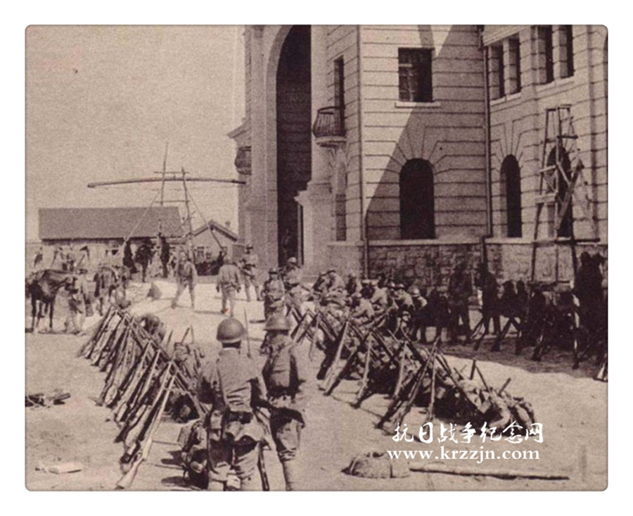 1931年9月18日事变发生当夜,东北边防军司令长官公署中将参谋长荣臻根据张学良之命,命令东北军“不准抵抗,不准动,把枪放到库房里,挺着死,大家成仁,为国牺牲”。图为日军占领吉林东北军军械厂。