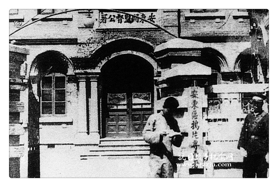 1905年,日本在日俄战争中获胜,通过日俄讲和条约,将中国旅顺、大连等地的租借权和长春-旅顺的铁路及附属设施的财产权利占为己有。此后,日本创立“南满洲铁道株式会社”,并有关东军负责铁路沿线的警备。图为日本于1932年6月11日成立的伪满中央银行总行。