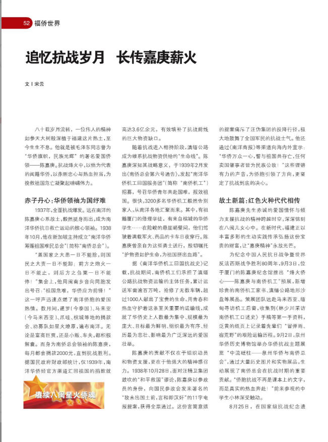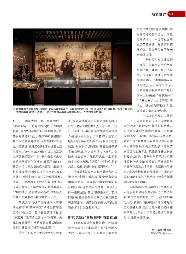 从浩瀚南洋到八闽故土,从烽火连天的岁月到和平发展的年代,“华侨旗帜”的光芒从未黯淡。当下,我们深切铭记历史,更要以“嘉庚精神”作为跨越时空的磅礴力量,激励全球闽籍侨胞永葆赤子丹心,守护山河无恙;勇担时代使命,共赴复兴征程!