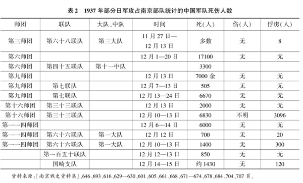 上海沦陷后中国军队西撤,且战且退,沿途除上海附近,没有出现大量的俘虏,也没有大规模的死尸。激烈战斗、大量尸体的出现(主要是日军屠杀俘虏),主要发生在中国军队退无可退的南京战役中。从日军的第一手记载看,到南京城破前,死亡人数远多于负伤人数,“敌人弃尸”更是多于俘虏(参见表2)。