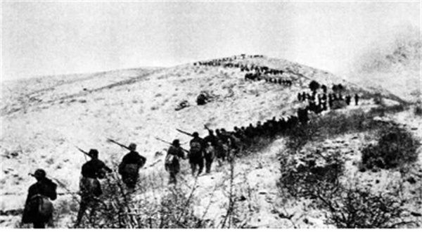 1944年3月,八路军主力挺进外长城龙关、崇礼、赤城地区。图为向独石口挺进的八路军