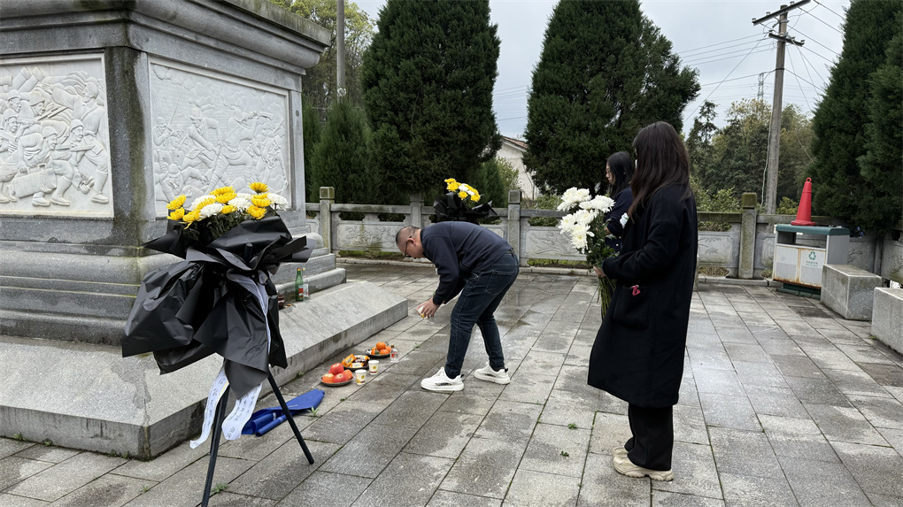 活动现场,松柏挺拔,丰碑矗立,“中央阵亡将士”的墓碑历经风雨仍清晰可辨,静静诉说着当年的浴血荣光。祭奠仪式在庄严的氛围中有序开展,全体人员向抗日阵亡将士默哀致敬,以此寄托对英烈的深切哀思。默哀毕,志愿者依次走上前,将手中的菊花轻轻放在烈士墓前,鞠躬致意,表达对英烈的崇高敬意与深切缅怀。随后,相关负责人深情讲述了春华山战役的悲壮历史,回顾了英烈们浴血奋战、保家卫国的英勇事迹,重温了那段山河破碎、军民同心抗敌的峥嵘岁月,让在场每一位参与者都接受了一次深刻的爱国主义精神洗礼。