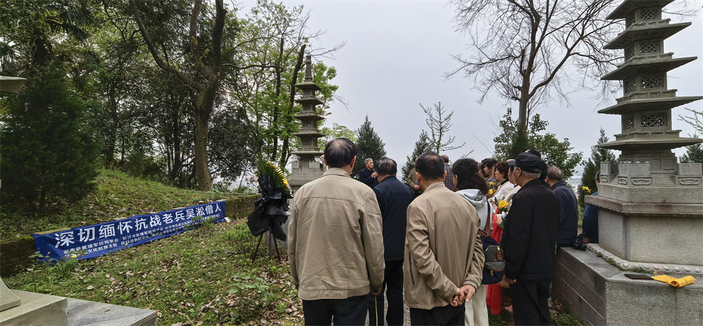 清明时节,春回大地,万物致洁。4月5日,在湖南省海坤和平公益发展中心的大力支持下,长沙市抗战文化研究会、湖南省黄埔军校同学会、长沙市黄埔军校同学会、长沙市黄埔后裔联谊会、长沙黄埔书画院、湖南炎德文化实业有限公司、抗日战争图书馆、抗日战争纪念网、湖南知青网、中共湖南炎德文化实业有限公司党支部、中共长沙市抗战文化与文博学会党支部、湖南民革省直文化创意支部、湖南民革省直综合支部等多家单位代表齐聚湖南常德乾明寺,共同举行吴淞墓祭奠仪式,深切缅怀这位为民族独立浴血奋战、晚年潜心超度战友的抗战老兵。