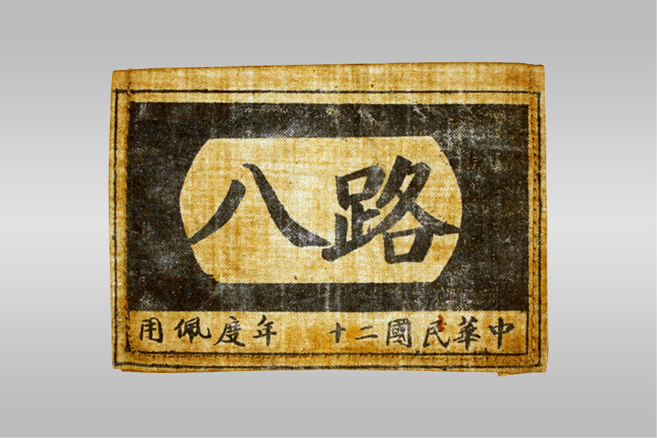 此臂章是贺龙在抗战初期佩戴的。臂章正面印有蓝色方框,手写蓝色楷体字“八路 中华民国二十 年度佩用”,背面印有蓝色方框,写有“尽忠职务、严守纪律、实行主义、完成革命”“西安宝华新制”。根据国共两党达成的协议,1937年8月,中国共产党领导的红军主力部队改编为国民革命军第八路军,下辖第一一五师、第一二〇师、第一二九师。贺龙任八路军第一二〇师师长。