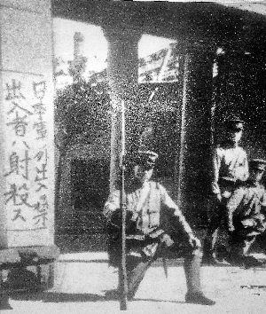 ▲日军在沈阳街头张贴布告。