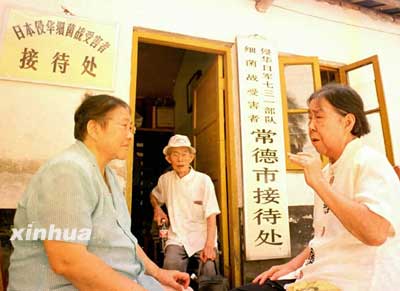 日军当年实施的细菌战罪行,给中国老百姓带来深重的灾难。60多年过去了,那场灾难的亲历者、受害者回忆起当时的情景时,依然忍不住流泪。这是细菌战幸存者湖南常德的何英珍(左)和杨智慧(右)老人痛诉当年自己受鼠疫毒害的悲惨情形。