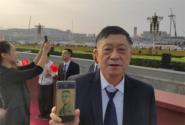 △外公将老爷爷易安华将军遗像带到阅兵仪式观礼台