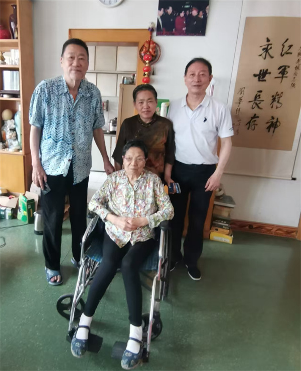 △作者(右二)在武汉采访抗战老兵后人