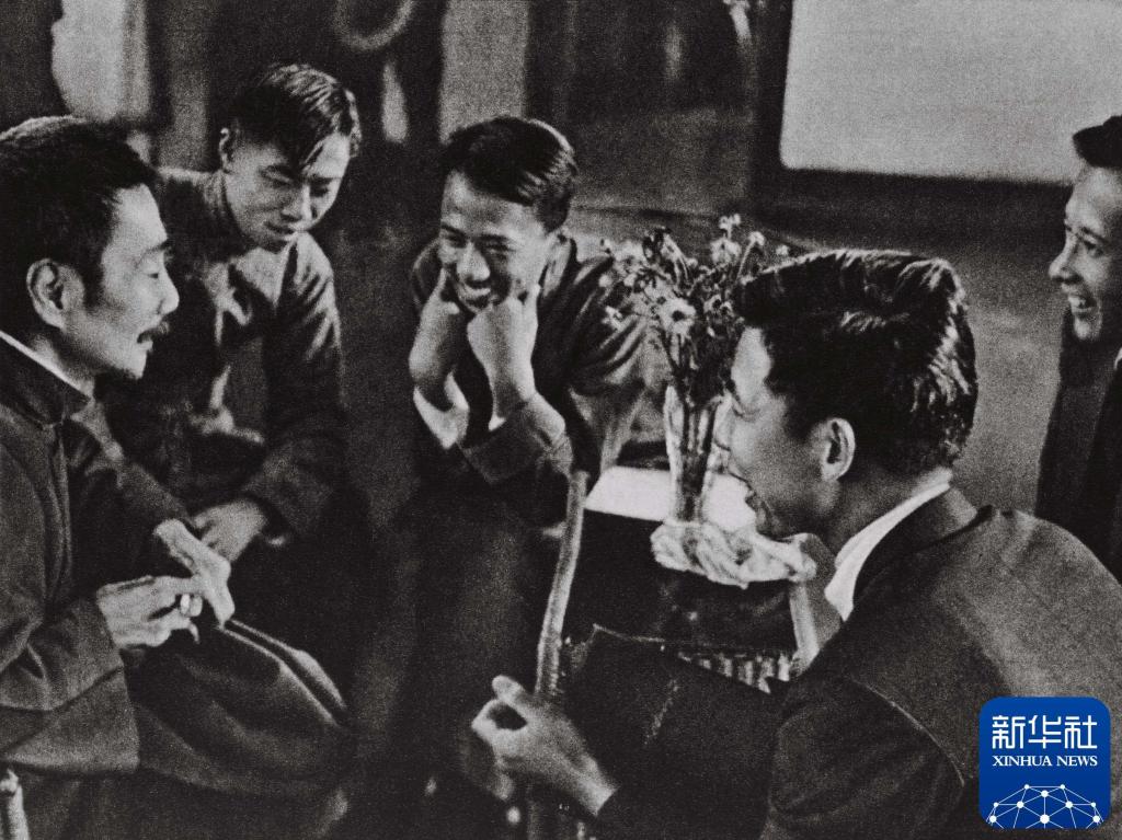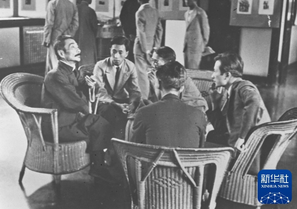 ▲1936年10月8日,鲁迅在上海八仙桥青年会参观第二回全国木刻展览会时,与青年木刻工作者交谈。