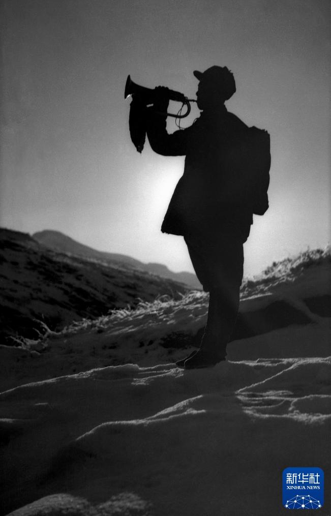 ▲抗日战争时期晋察冀边区的八路军司号员。