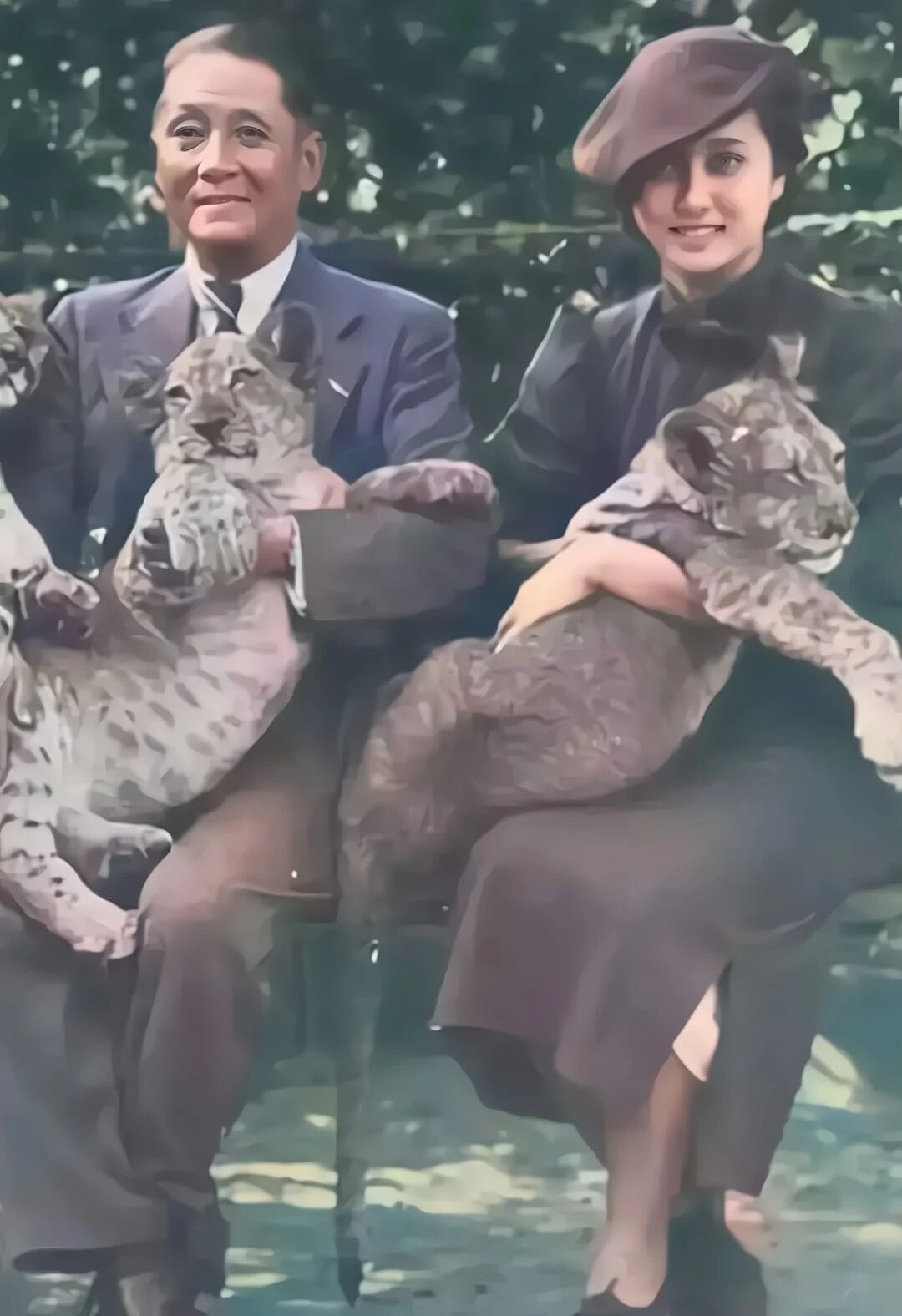 1936年,德国柏林,正与幼狮合影的蒋英、蒋百里父女