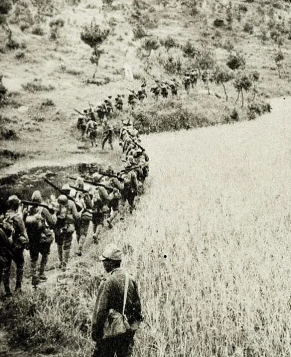 1938年8月,武汉会战期间日本军队入霍山城照片