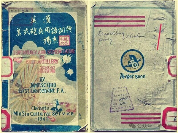 笔者从旧书网淘到一册《英汉美式炮兵用语词典》,土纸平装,小32开/200页。版权页记录:有著作权,翻印必究;1945年7月蓉初版;编著人:郭铮;发行人:民新文化社;经售处:成都各书店;重庆总经售:复兴书局;昆明总经售:金马书店。国内外定价每册国币美金:半圆。