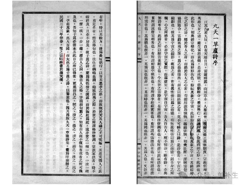 1940年,鲁元作《九天一草庐》:“九天一草庐,朝耕夕读书。葆真长抱朴,浑然太元初。”诗中“九天”喻高远澄明之境,或指云霄,亦象征超然物外的精神世界;“一草庐”则谓简朴茅屋,寓意清素生活。全诗描绘出一幅隐逸修身之景:居于高远清静之地,耕读自足,在劳作与诗书中持守本真,渐臻与天地合一之境。诗作融汇道家“返璞归真”之思,倡导超脱世务,回归自然本心,追求心灵的自由与真淳。