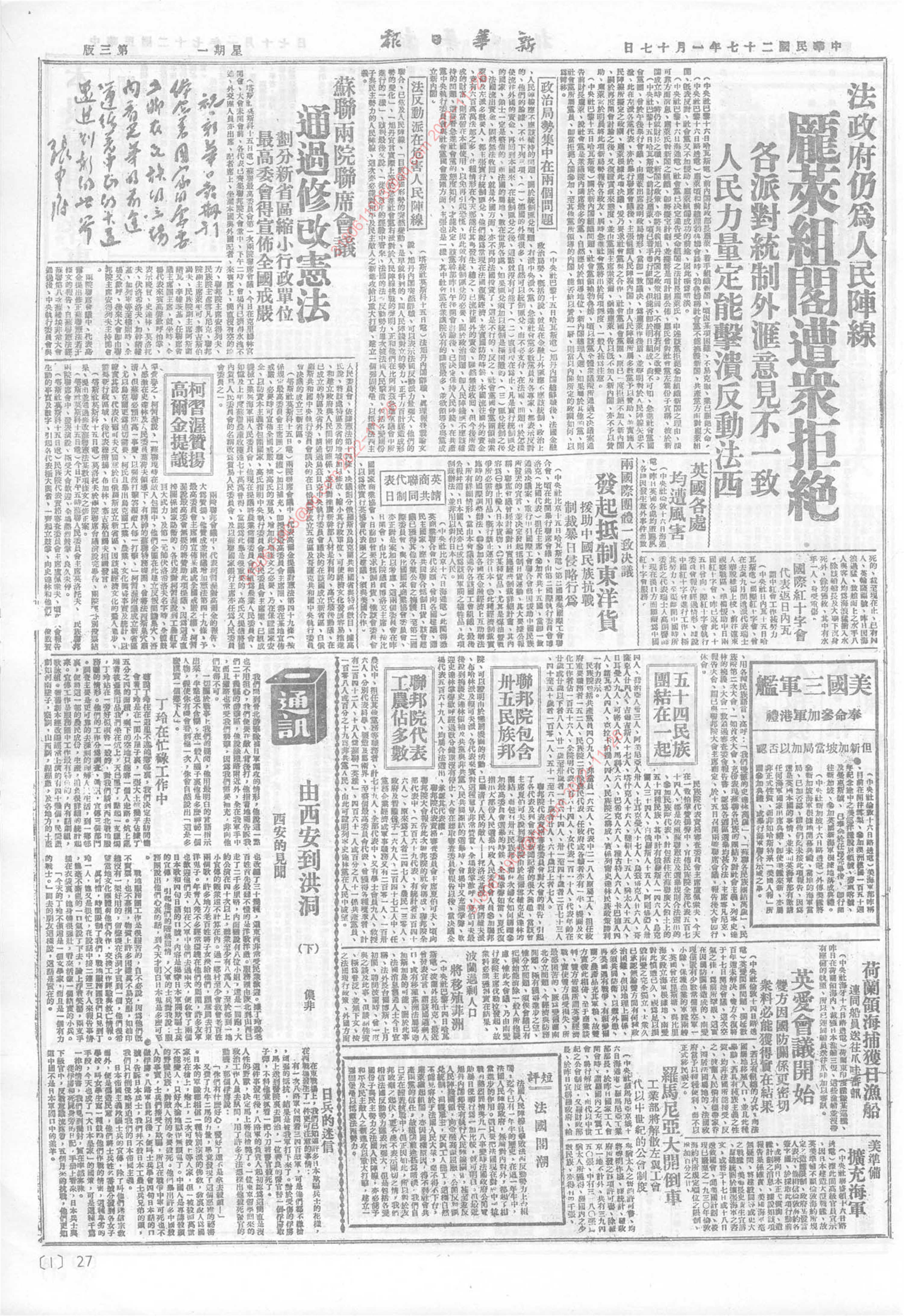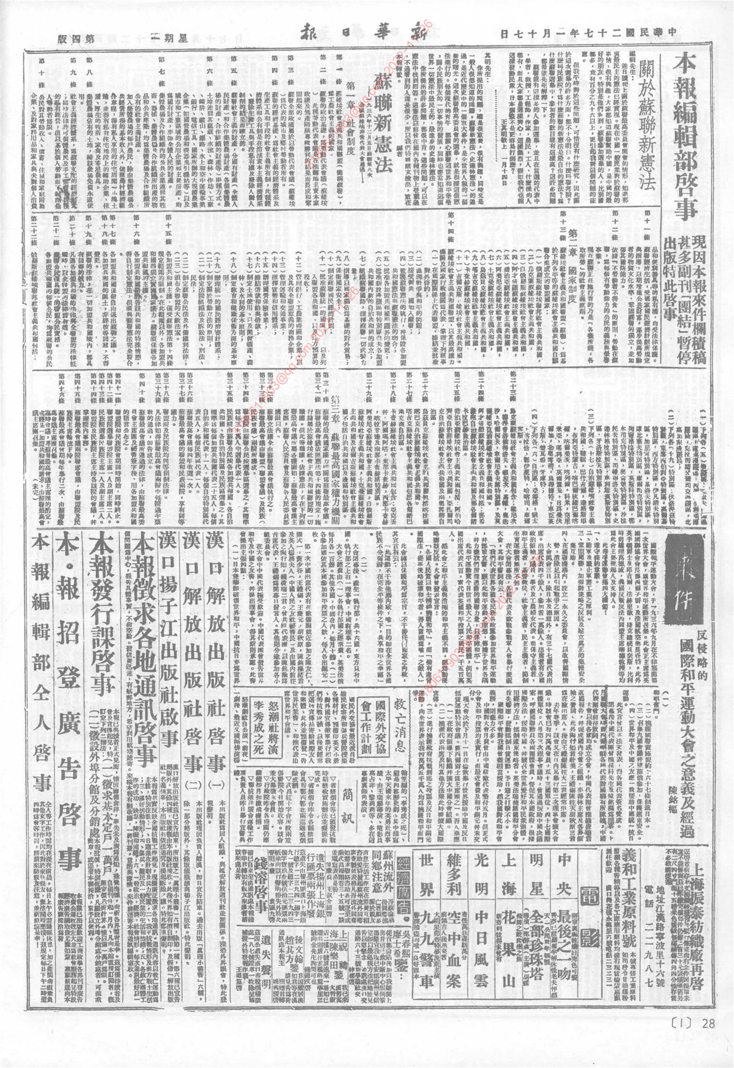 《新华日报》最早在抗日战争时期和解放战争初期(1938年1月11日-1947年2月28日)是中国共产党的大型机关报,它是由周恩来等老一辈无产阶级革命家在河北涉县一二九师司令部亲自创办的、中国共产党第一张在全国公开发行的报纸并一直持续至1947年2月28日。1937年,国共开始第二次合作。中国共产党与国民党当局商定,在南京公开发行中共党报《新华日报》。但是因为顽固派阻挠及日军逼近,报社被迫迁至武汉成忠街53号。延至1938年1月11日,《新华日报》正式在武汉创刊。正式创刊后,报社迁至汉口大陆里。发行部则设大陆里临街的平房内(原建筑已改建)。该报在武汉期间,属中国共产党长江局领导。