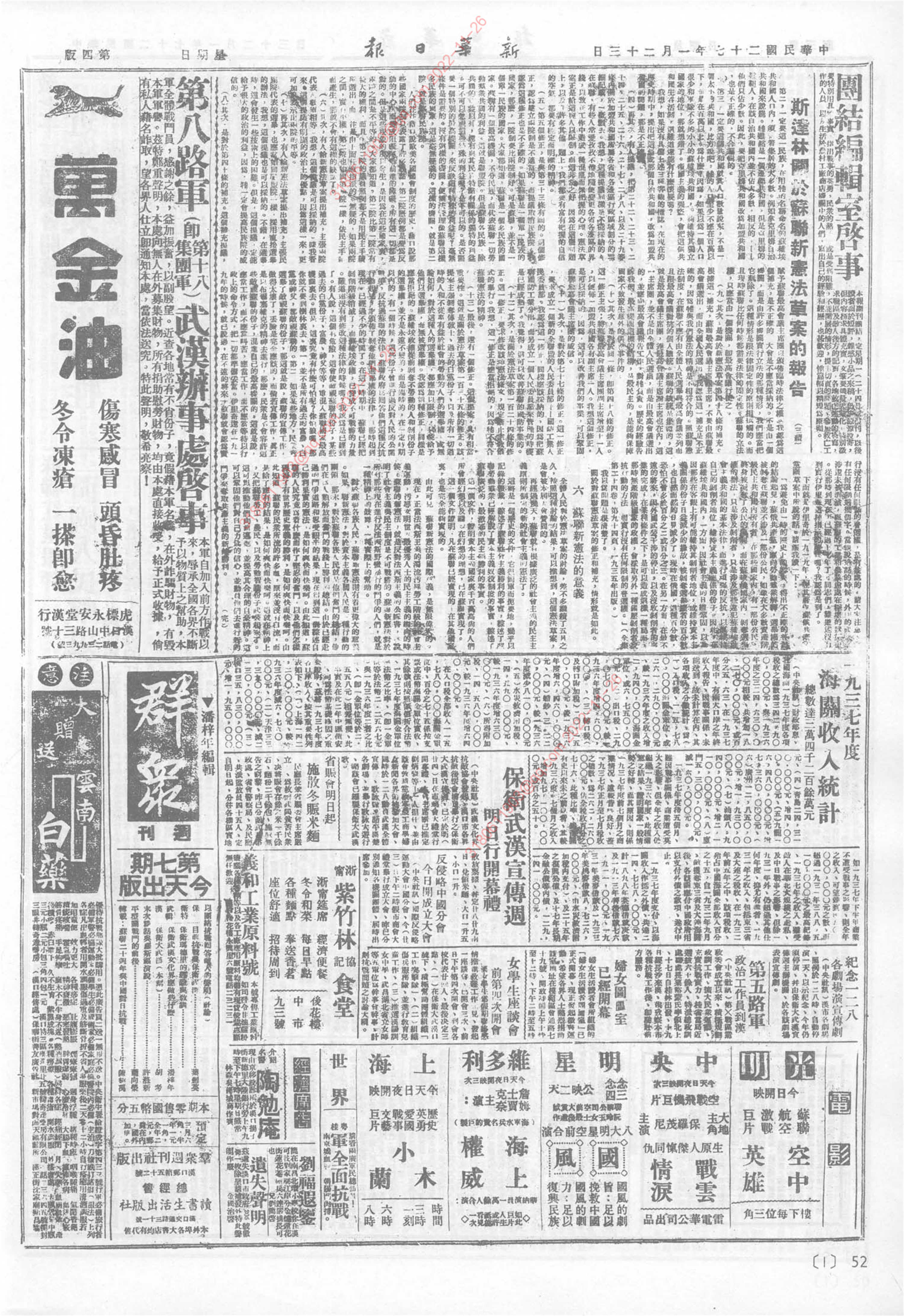 《新华日报》最早在抗日战争时期和解放战争初期(1938年1月11日-1947年2月28日)是中国共产党的大型机关报,它是由周恩来等老一辈无产阶级革命家在河北涉县一二九师司令部亲自创办的、中国共产党第一张在全国公开发行的报纸并一直持续至1947年2月28日。1937年,国共开始第二次合作。中国共产党与国民党当局商定,在南京公开发行中共党报《新华日报》。但是因为顽固派阻挠及日军逼近,报社被迫迁至武汉成忠街53号。延至1938年1月11日,《新华日报》正式在武汉创刊。正式创刊后,报社迁至汉口大陆里。发行部则设大陆里临街的平房内(原建筑已改建)。该报在武汉期间,属中国共产党长江局领导。