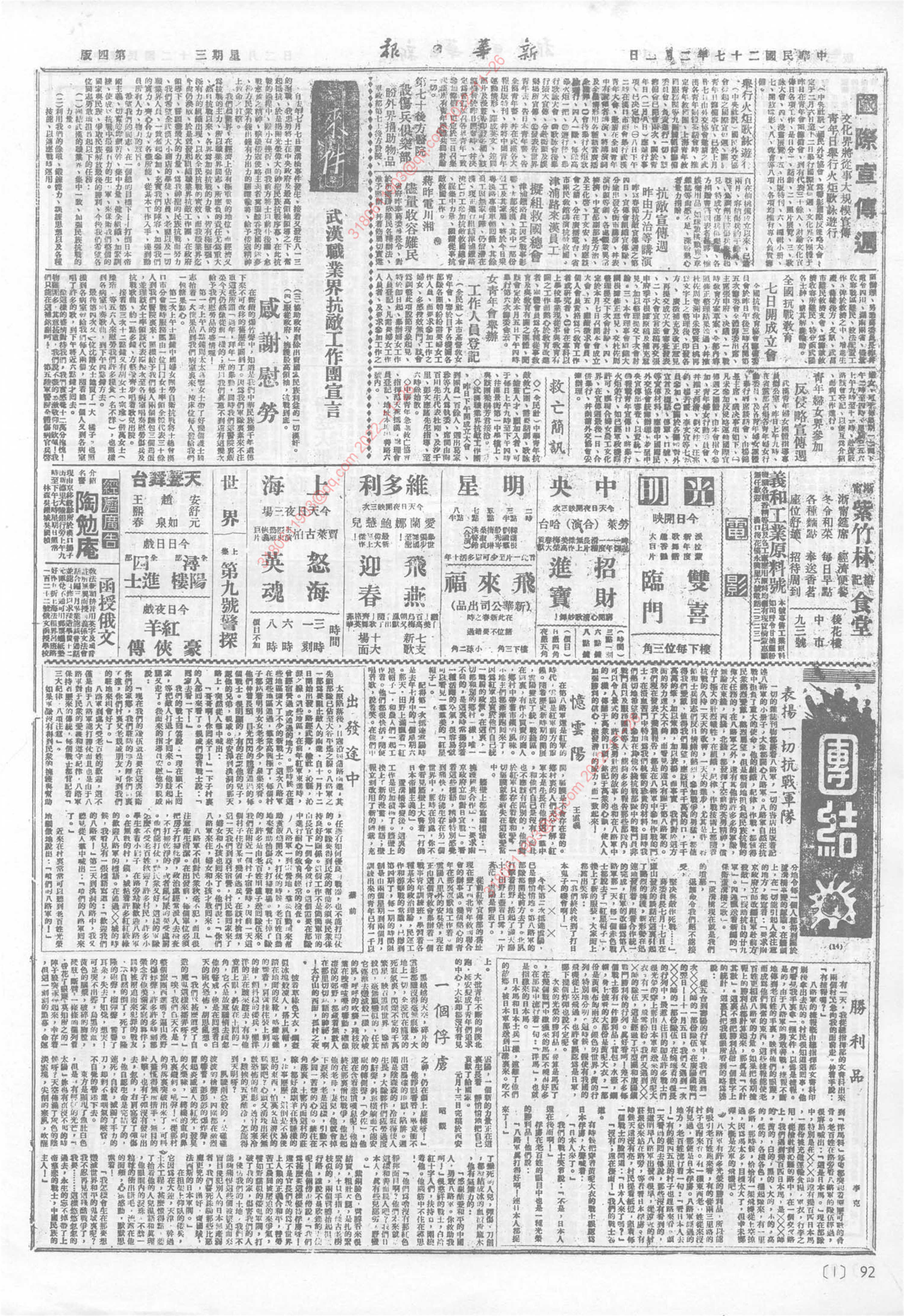 在发展抗日民族统一战线和爱国民主统一战线方面,《新华日报》也做了大量工作。用大量版面,为民主党派和各界知名人士提供一个比较自由的讲坛。冯玉祥将军和郭沫若、茅盾、柳亚子、沈钧儒、黄炎培、邓初民、陶行知、张西曼、胡厥文、胡子昂等学者、教授和社会活动家,经常为此报撰稿。马寅初曾在"友声"专栏发表文章,痛斥国民党的腐败,呼吁"建立一个真正民主的国家"。它的副刊是进步文化运动的重要阵地,团结了一大批优秀的文学艺术和文化工作者。它的国际报导也很有特色。1942年底﹐根据周恩来的指示,开设了"国际述评"专栏,由乔冠华主笔。这个专栏的文章以资料翔实、分析透彻、富于哲理和文采而受到读者欢迎,经常为外国通讯社所转载。