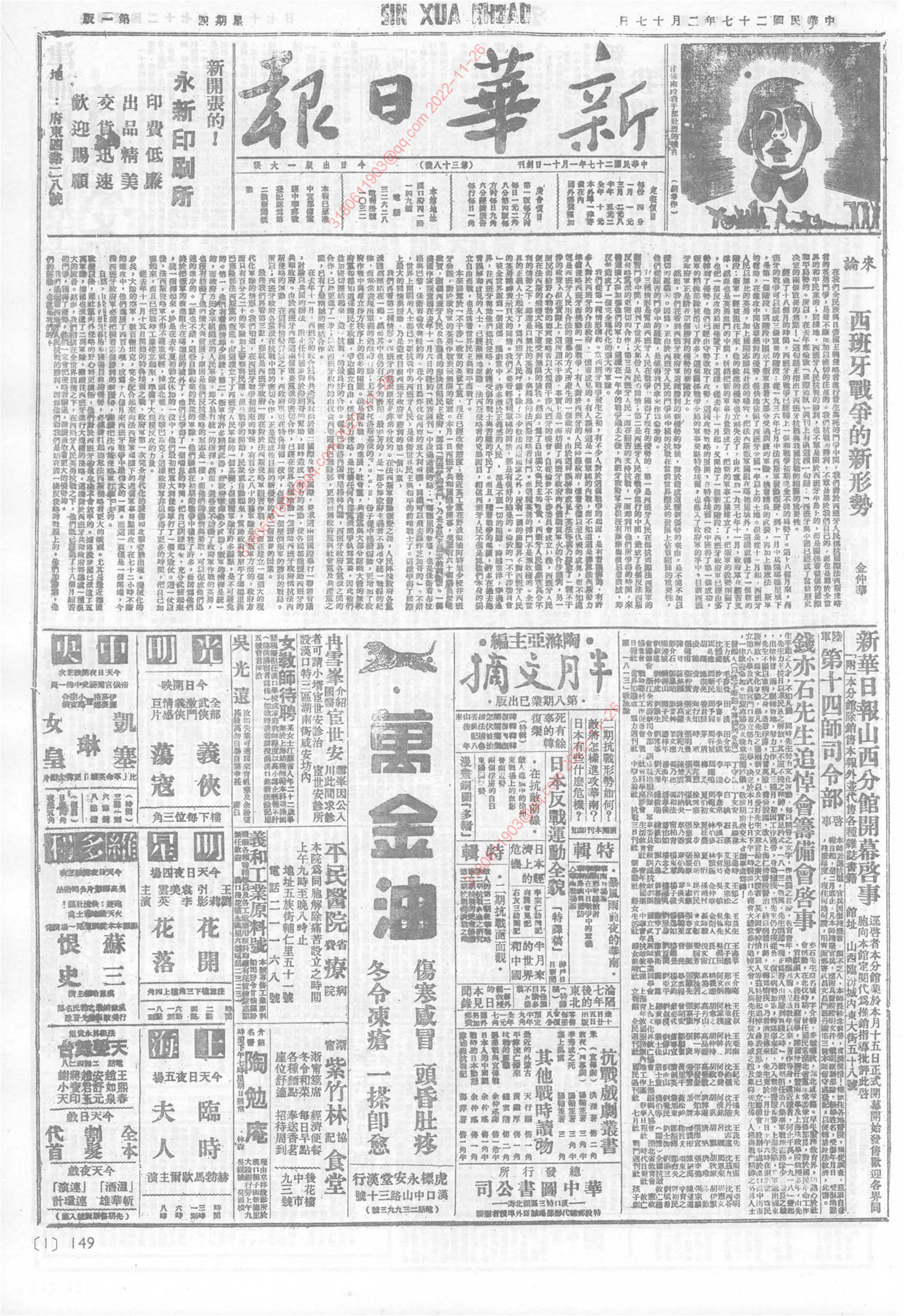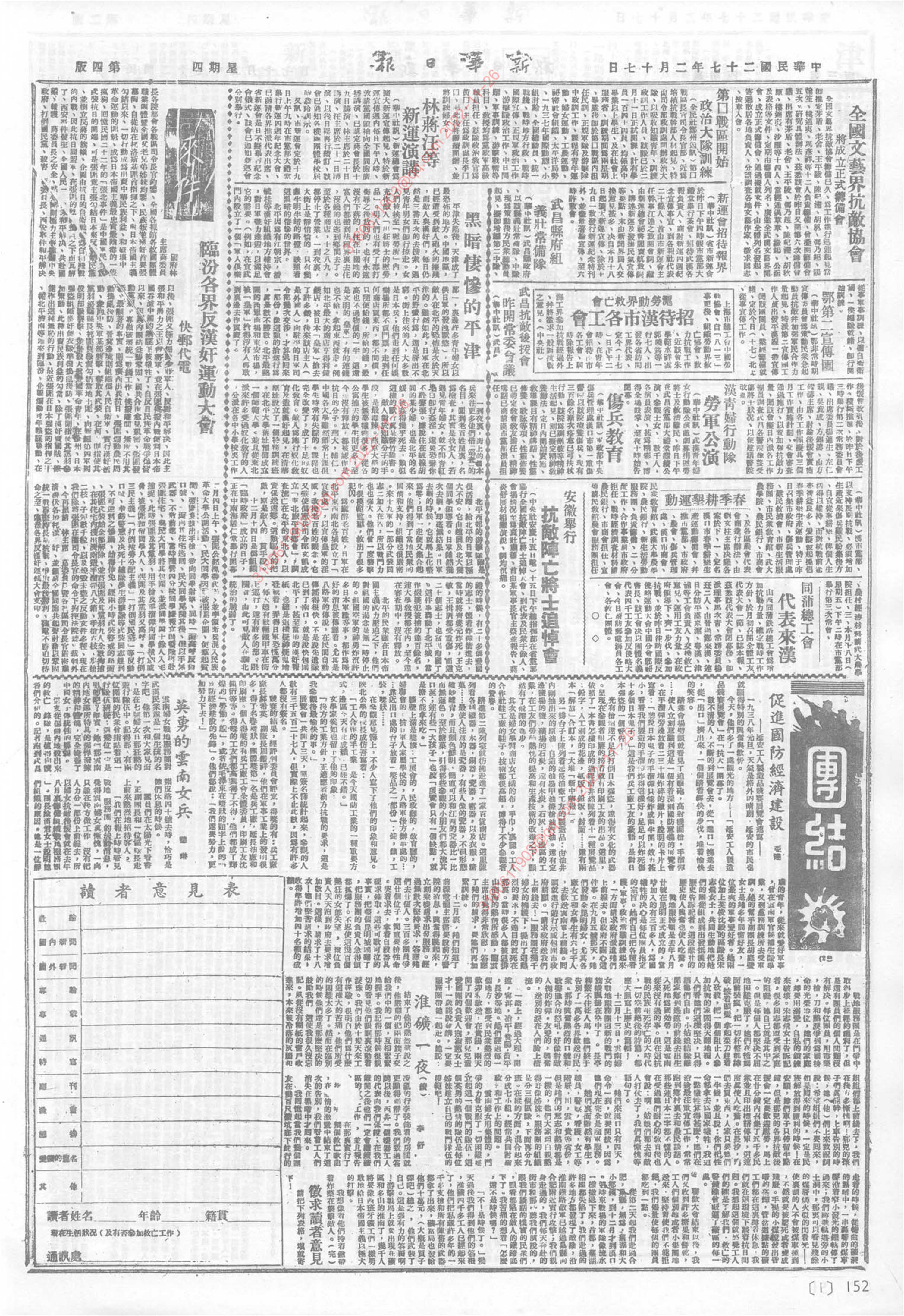 《新华日报》最早在抗日战争时期和解放战争初期(1938年1月11日-1947年2月28日)是中国共产党的大型机关报,它是由周恩来等老一辈无产阶级革命家在河北涉县一二九师司令部亲自创办的、中国共产党第一张在全国公开发行的报纸并一直持续至1947年2月28日。1937年,国共开始第二次合作。中国共产党与国民党当局商定,在南京公开发行中共党报《新华日报》。但是因为顽固派阻挠及日军逼近,报社被迫迁至武汉成忠街53号。延至1938年1月11日,《新华日报》正式在武汉创刊。正式创刊后,报社迁至汉口大陆里。发行部则设大陆里临街的平房内(原建筑已改建)。该报在武汉期间,属中国共产党长江局领导。