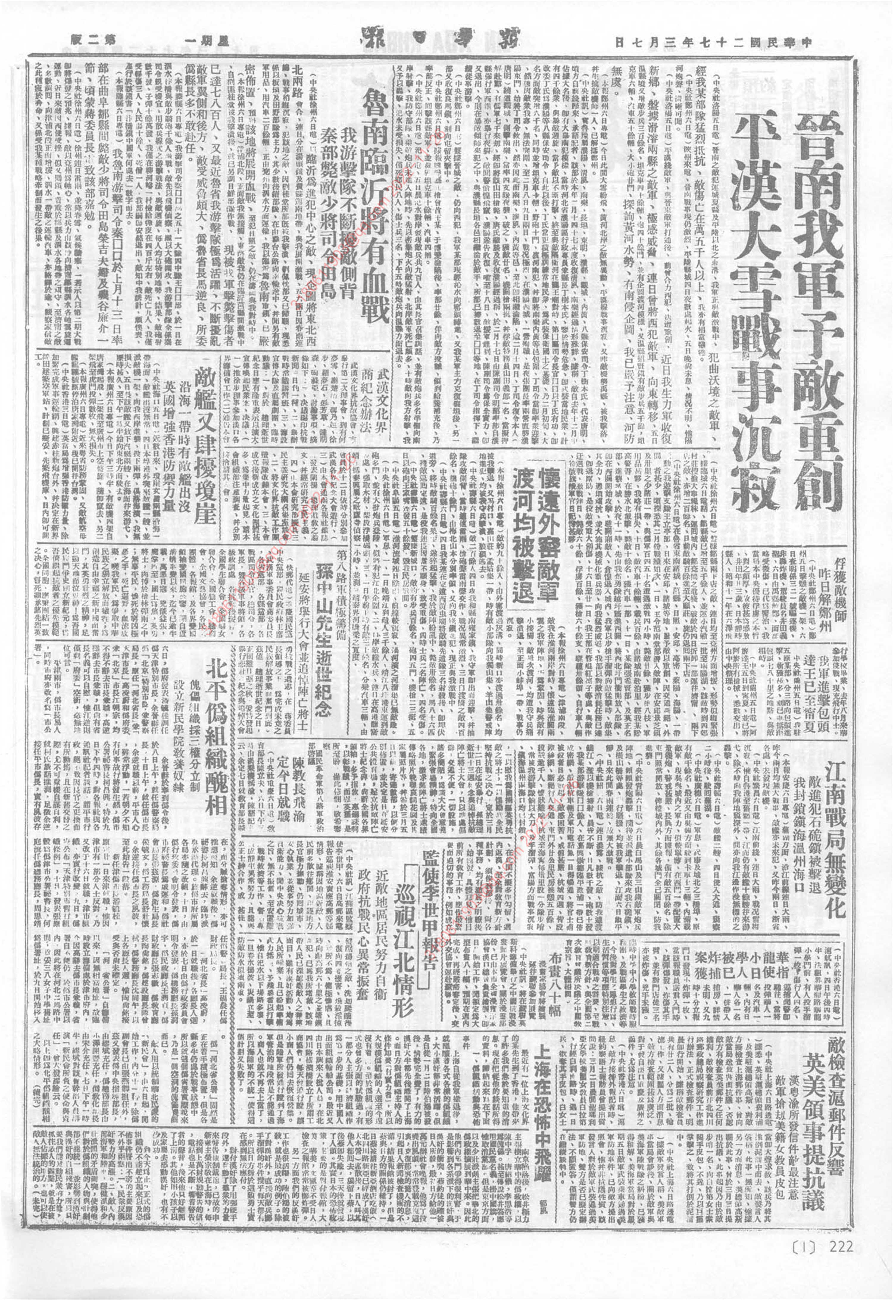 《新华日报》1938年3月7日01