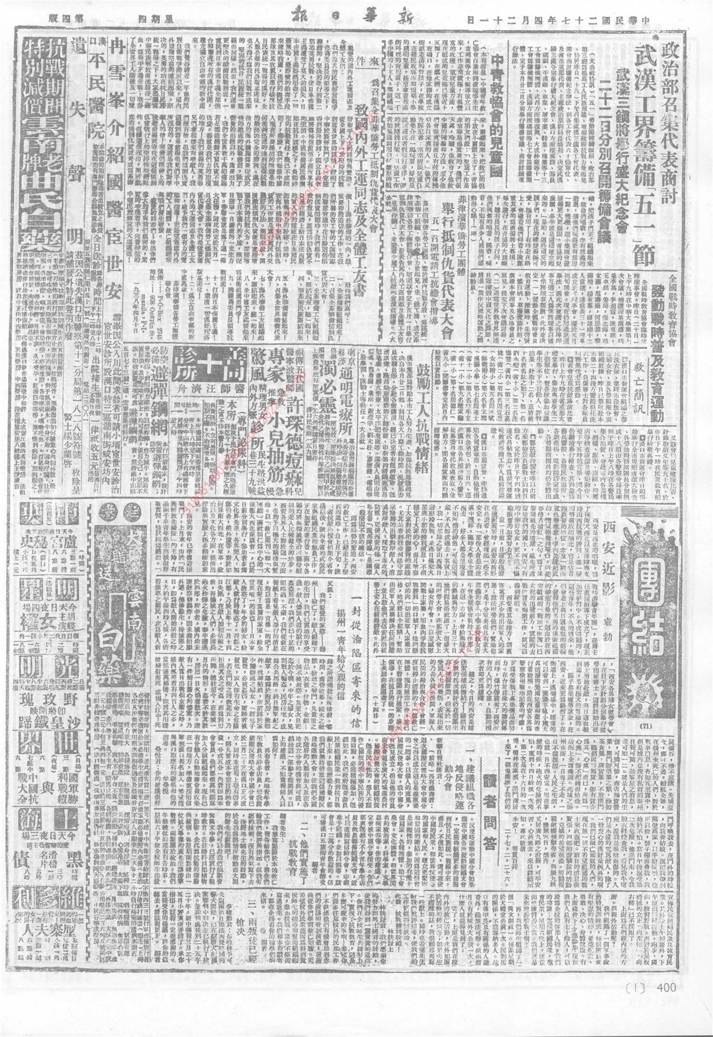 《新华日报》最早在抗日战争时期和解放战争初期(1938年1月11日-1947年2月28日)是中国共产党的大型机关报,它是由周恩来等老一辈无产阶级革命家在河北涉县一二九师司令部亲自创办的、中国共产党第一张在全国公开发行的报纸并一直持续至1947年2月28日。1937年,国共开始第二次合作。中国共产党与国民党当局商定,在南京公开发行中共党报《新华日报》。但是因为顽固派阻挠及日军逼近,报社被迫迁至武汉成忠街53号。延至1938年1月11日,《新华日报》正式在武汉创刊。正式创刊后,报社迁至汉口大陆里。发行部则设大陆里临街的平房内(原建筑已改建)。该报在武汉期间,属中国共产党长江局领导。