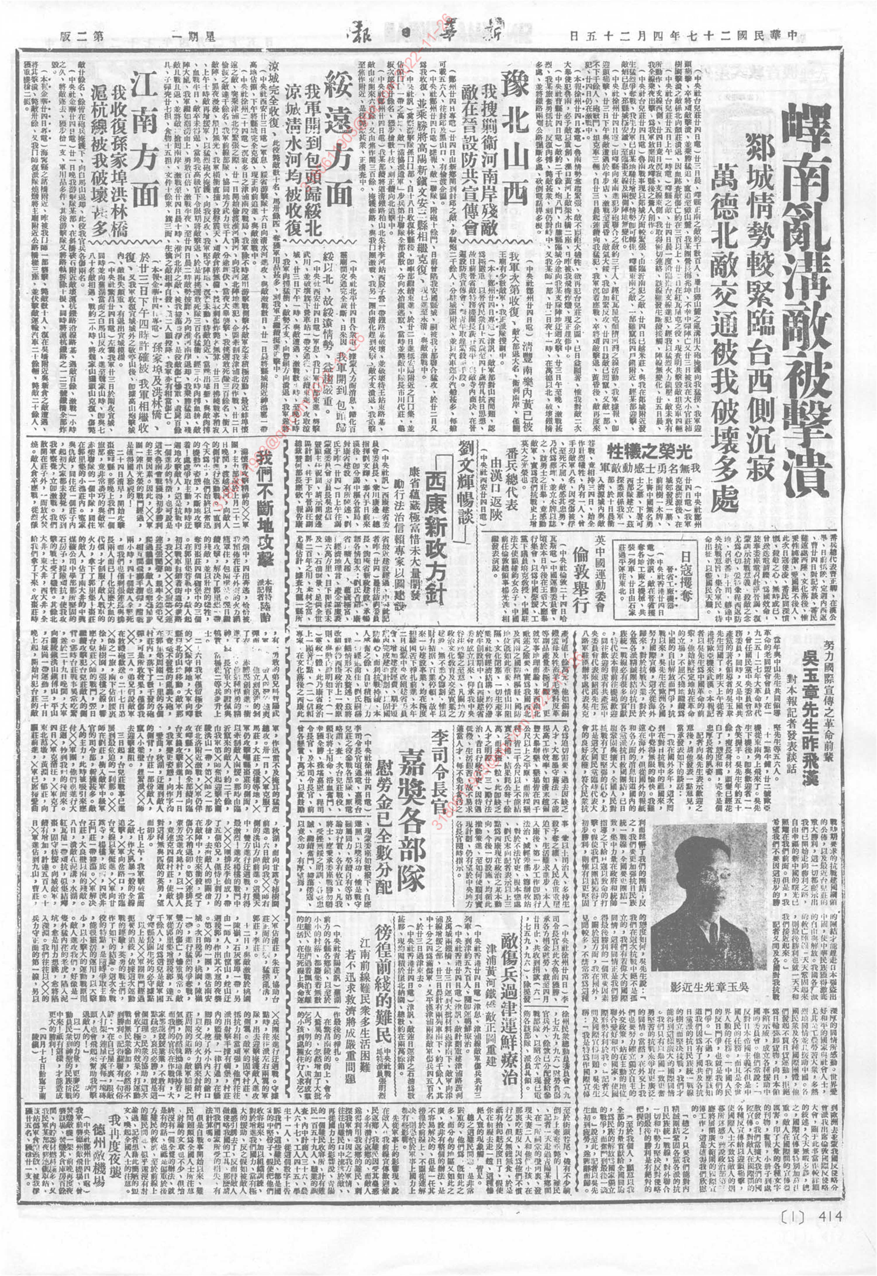 《新华日报》1938年4月25日02