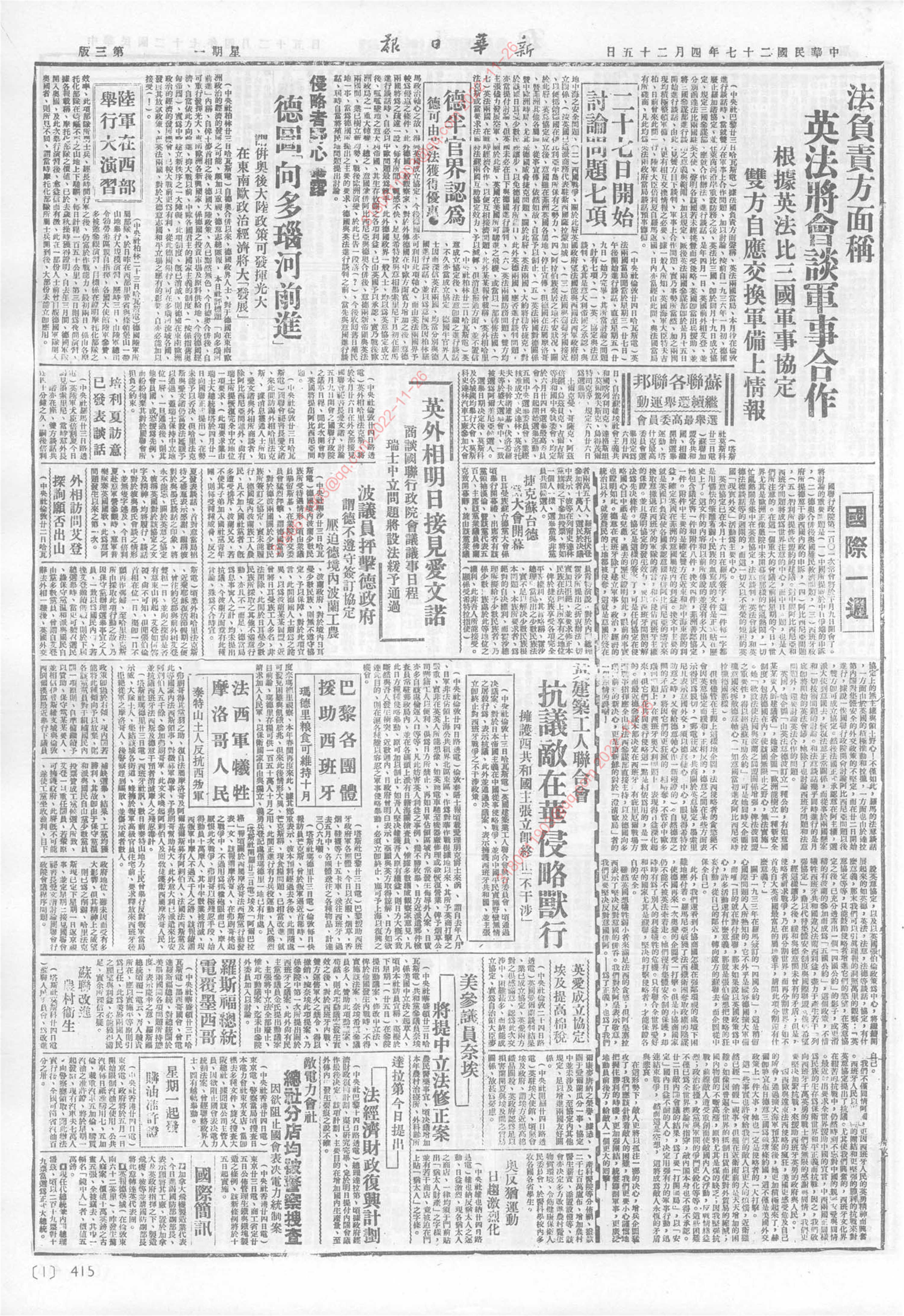 《新华日报》1938年4月25日03