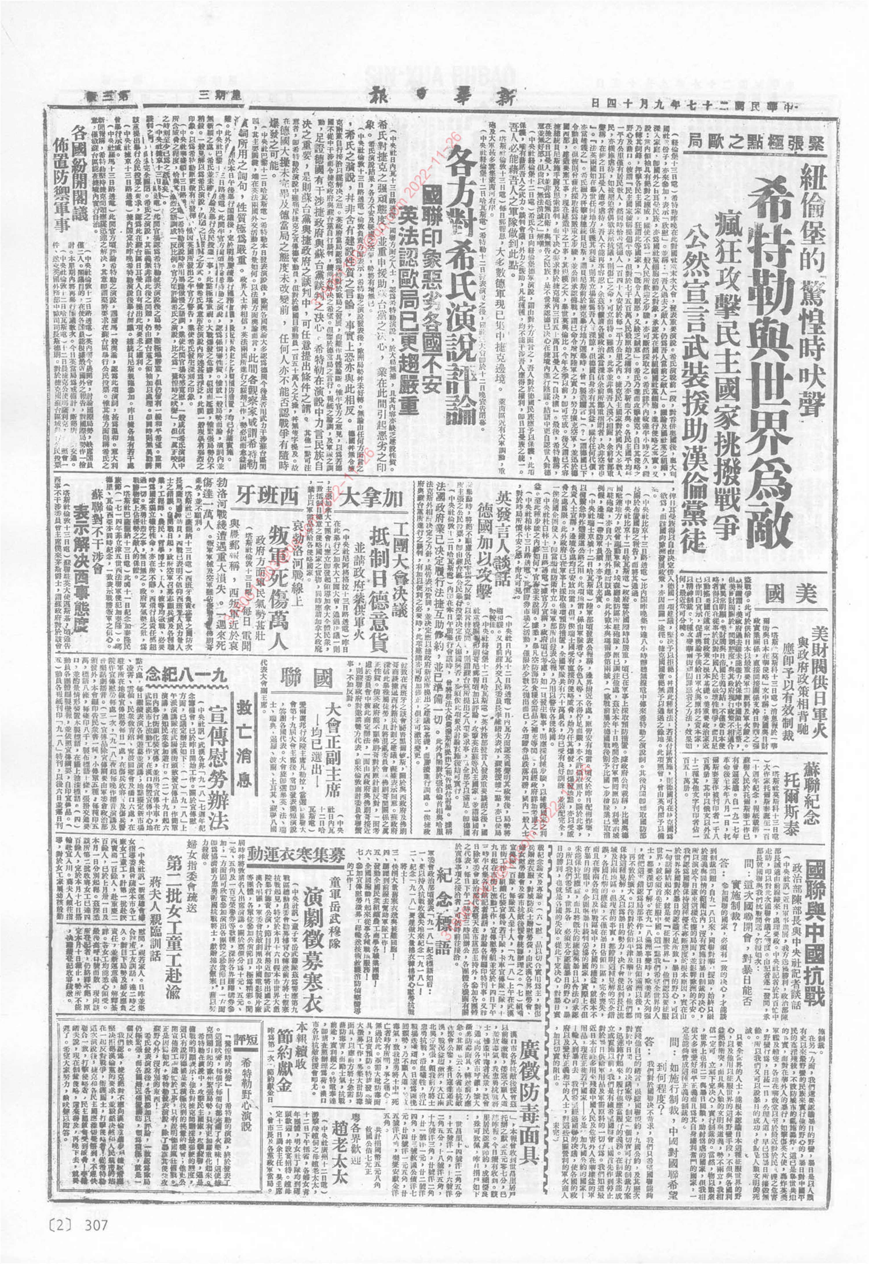 《新华日报》1938年9月14日02