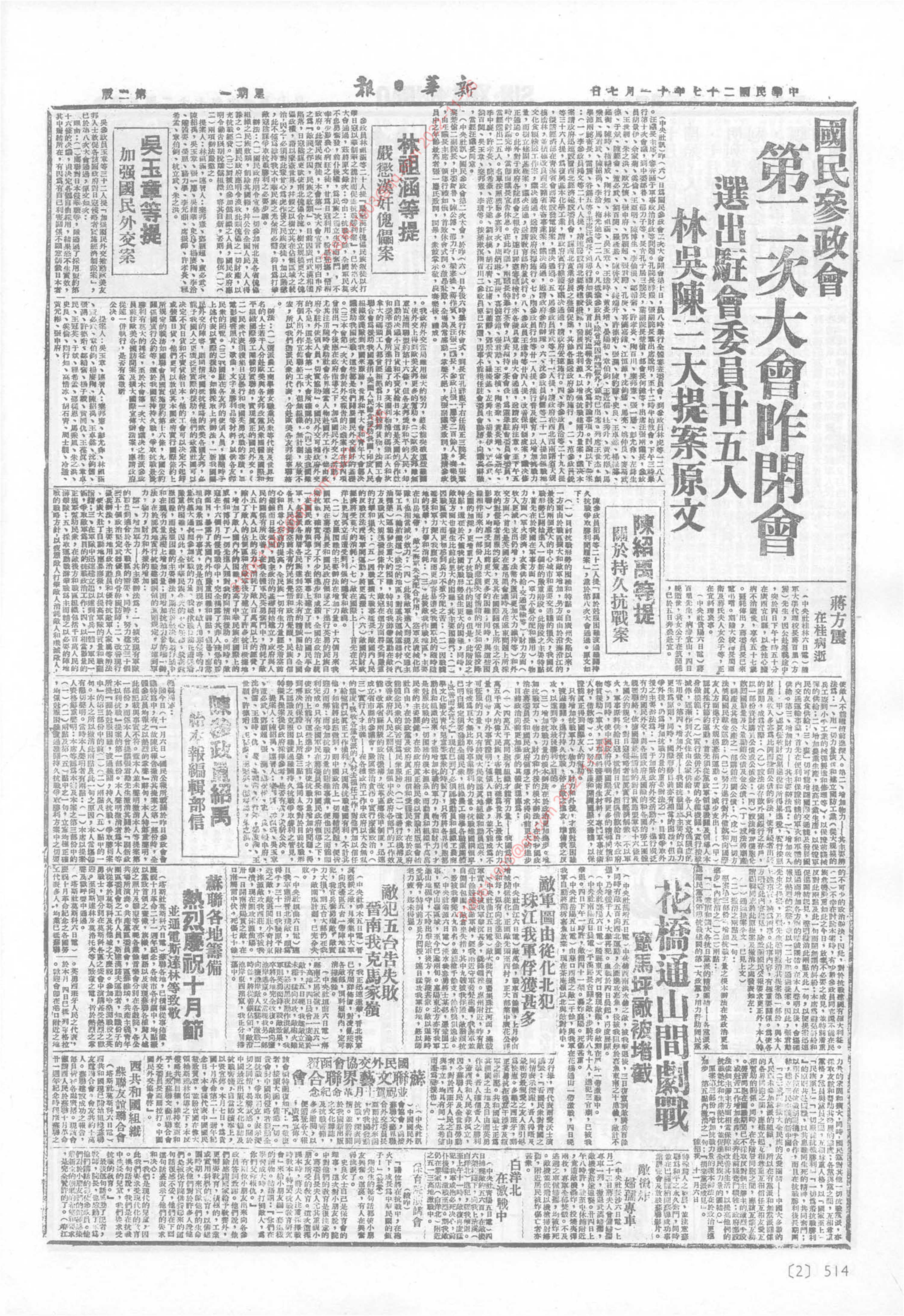 《新华日报》1938年11月7日02