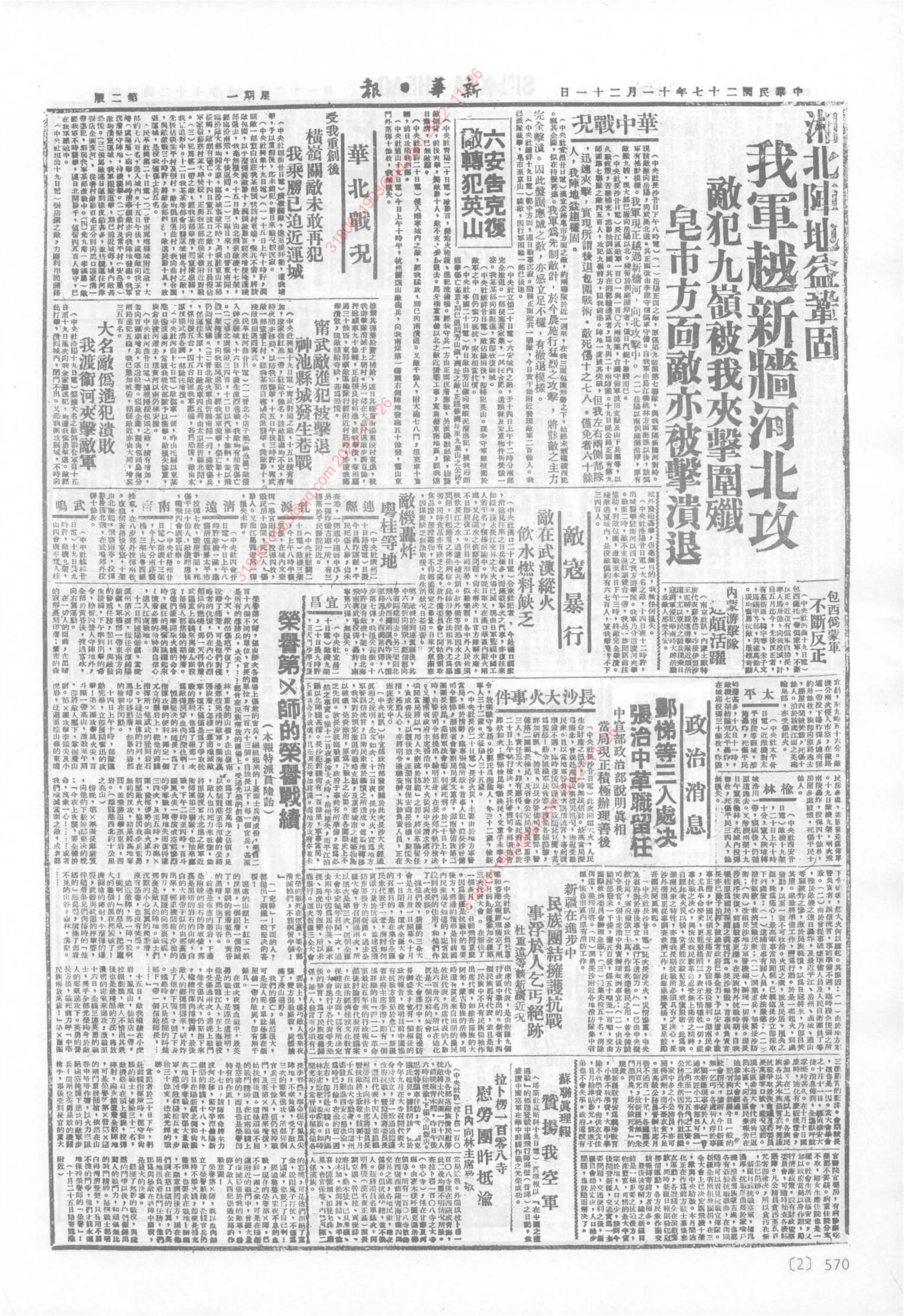 《新华日报》最早在抗日战争时期和解放战争初期(1938年1月11日-1947年2月28日)是中国共产党的大型机关报,它是由周恩来等老一辈无产阶级革命家在河北涉县一二九师司令部亲自创办的、中国共产党第一张在全国公开发行的报纸并一直持续至1947年2月28日。1937年,国共开始第二次合作。中国共产党与国民党当局商定,在南京公开发行中共党报《新华日报》。但是因为顽固派阻挠及日军逼近,报社被迫迁至武汉成忠街53号。延至1938年1月11日,《新华日报》正式在武汉创刊。正式创刊后,报社迁至汉口大陆里。发行部则设大陆里临街的平房内(原建筑已改建)。该报在武汉期间,属中国共产党长江局领导。