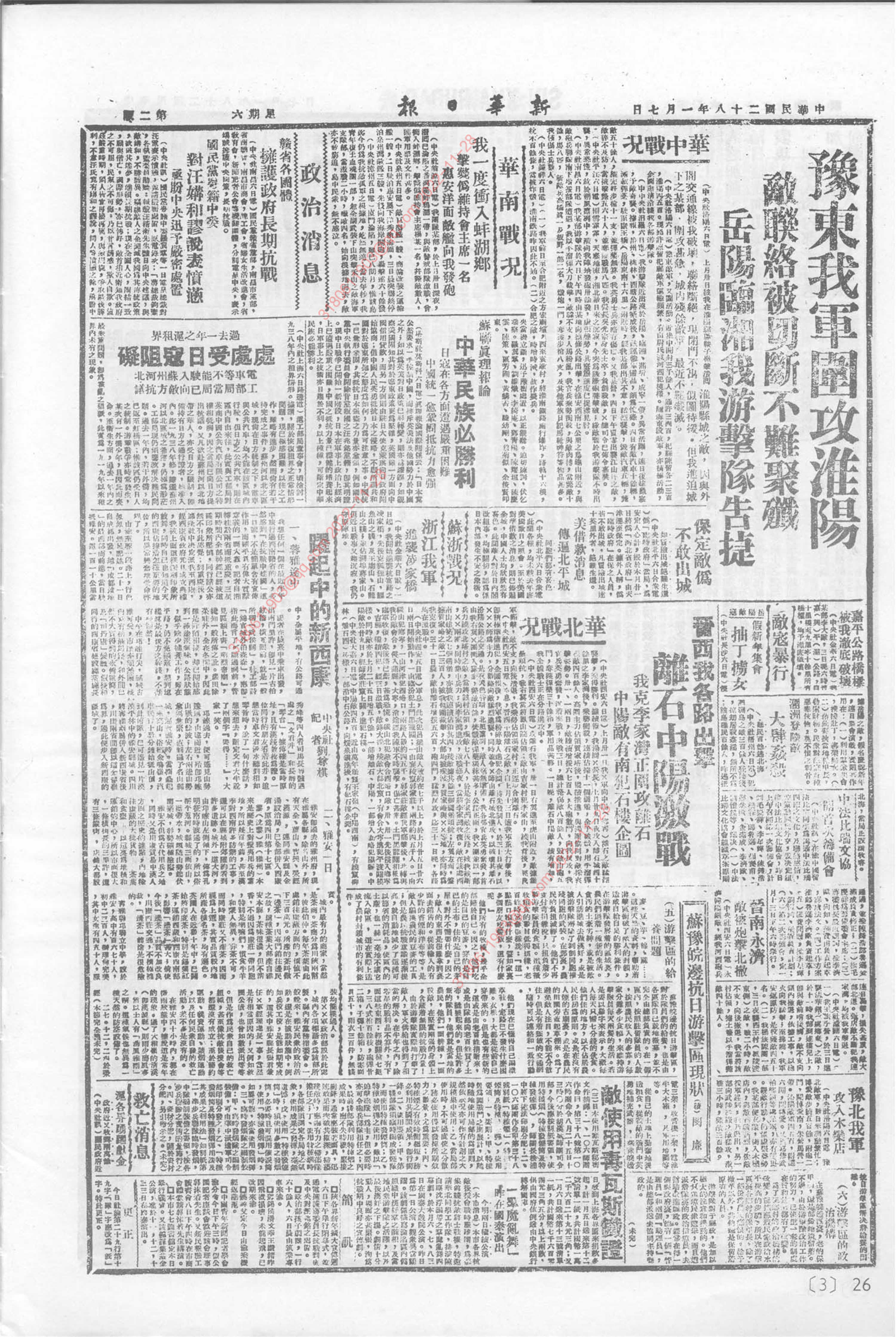 《新华日报》在宣传报导中坚持实事求是的原则,坚持中国共产党在国共合作中光明磊落的态度。积极报导八路军﹑新四军等人民武装力量英勇抗击日军的战绩,同时也如实反映了国民党爱国将士在正面战场的抗战事迹(台儿庄战役、徐州战役、武汉外围战)﹔经常为《新华日报》撰稿的有毛泽东、周恩来、刘少奇、朱德、彭德怀、叶剑英、王若飞、邓颖超、吴玉章、博古、董必武、陆定一等﹔对包括蒋介石在内的国民党高级领导人的抗日言论﹐也以热情欢迎的态度予以登载。