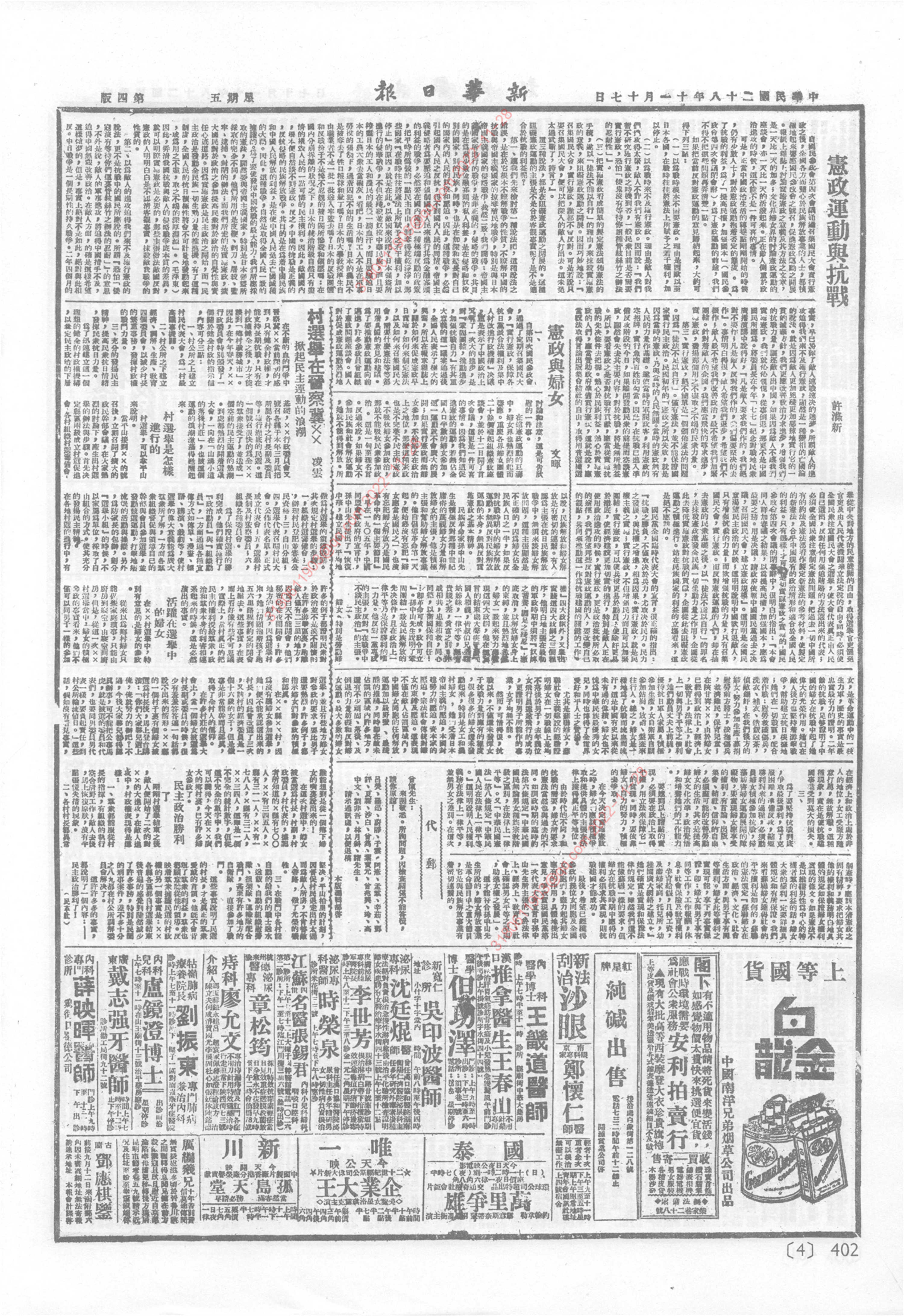 在发展抗日民族统一战线和爱国民主统一战线方面,《新华日报》也做了大量工作。用大量版面,为民主党派和各界知名人士提供一个比较自由的讲坛。冯玉祥将军和郭沫若、茅盾、柳亚子、沈钧儒、黄炎培、邓初民、陶行知、张西曼、胡厥文、胡子昂等学者、教授和社会活动家,经常为此报撰稿。马寅初曾在"友声"专栏发表文章,痛斥国民党的腐败,呼吁"建立一个真正民主的国家"。它的副刊是进步文化运动的重要阵地,团结了一大批优秀的文学艺术和文化工作者。它的国际报导也很有特色。1942年底﹐根据周恩来的指示,开设了"国际述评"专栏,由乔冠华主笔。这个专栏的文章以资料翔实、分析透彻、富于哲理和文采而受到读者欢迎,经常为外国通讯社所转载。