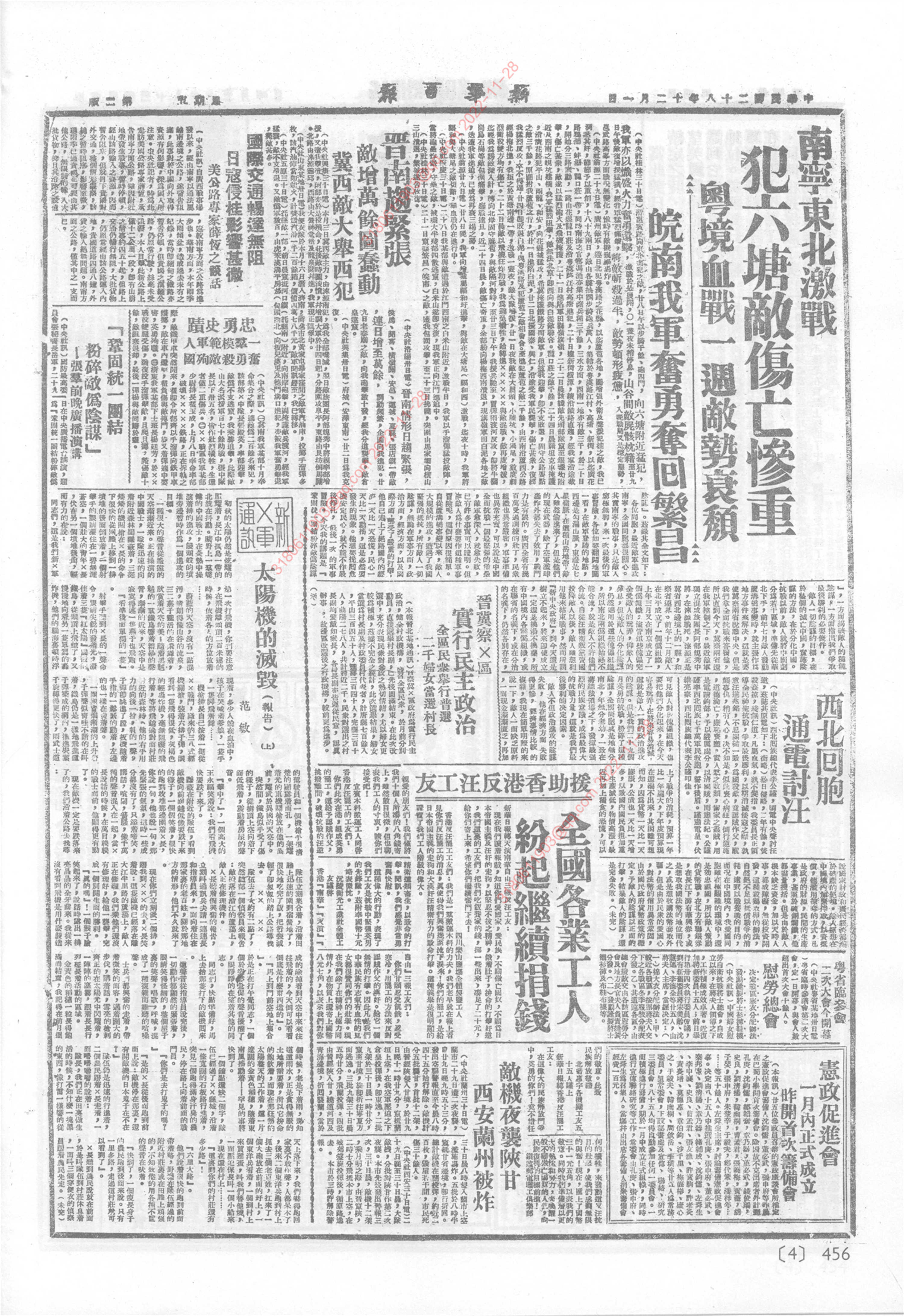《新华日报》最早在抗日战争时期和解放战争初期(1938年1月11日-1947年2月28日)是中国共产党的大型机关报,它是由周恩来等老一辈无产阶级革命家在河北涉县一二九师司令部亲自创办的、中国共产党第一张在全国公开发行的报纸并一直持续至1947年2月28日。1937年,国共开始第二次合作。中国共产党与国民党当局商定,在南京公开发行中共党报《新华日报》。但是因为顽固派阻挠及日军逼近,报社被迫迁至武汉成忠街53号。延至1938年1月11日,《新华日报》正式在武汉创刊。正式创刊后,报社迁至汉口大陆里。发行部则设大陆里临街的平房内(原建筑已改建)。该报在武汉期间,属中国共产党长江局领导。