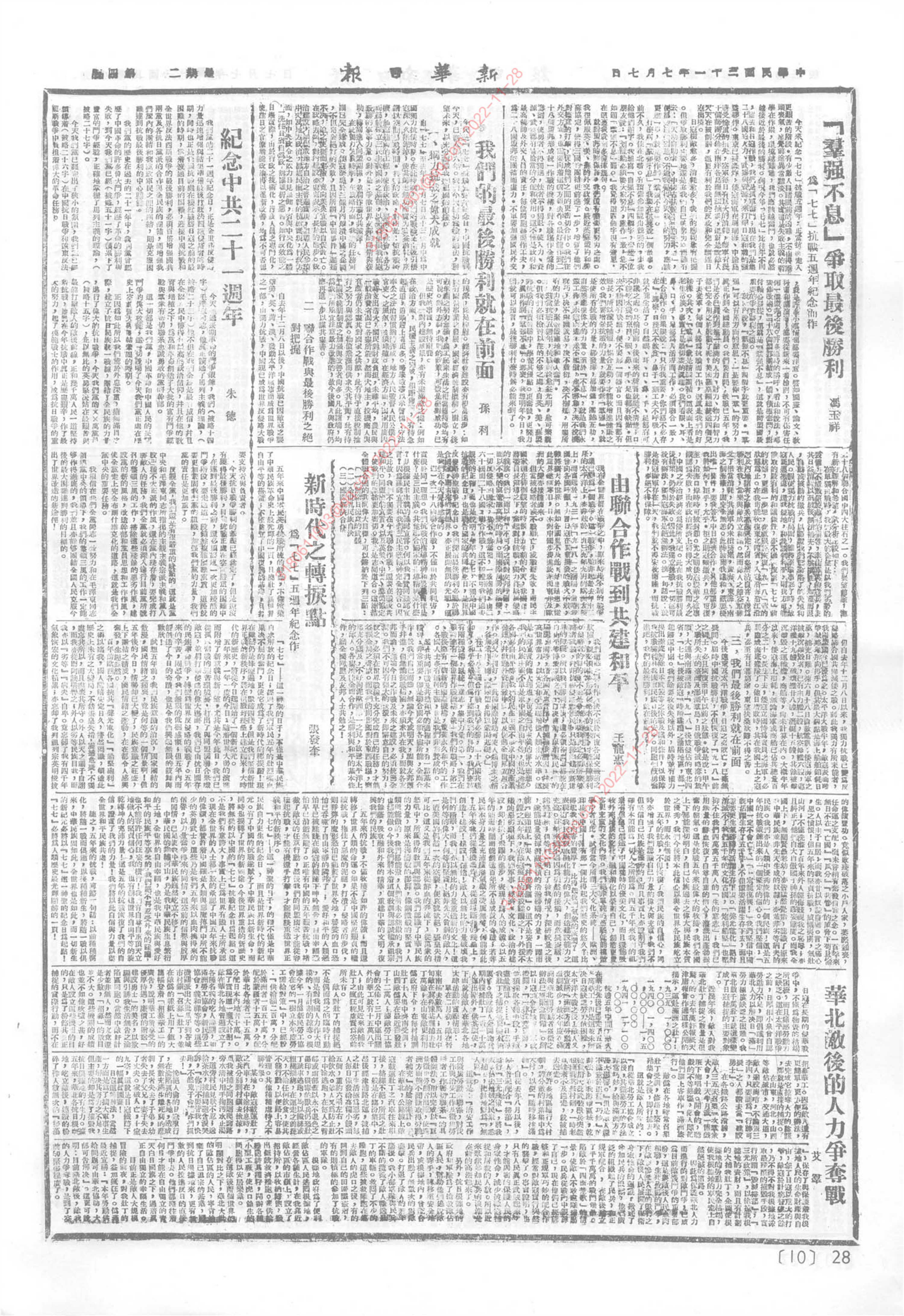 在发展抗日民族统一战线和爱国民主统一战线方面,《新华日报》也做了大量工作。用大量版面,为民主党派和各界知名人士提供一个比较自由的讲坛。冯玉祥将军和郭沫若、茅盾、柳亚子、沈钧儒、黄炎培、邓初民、陶行知、张西曼、胡厥文、胡子昂等学者、教授和社会活动家,经常为此报撰稿。马寅初曾在"友声"专栏发表文章,痛斥国民党的腐败,呼吁"建立一个真正民主的国家"。它的副刊是进步文化运动的重要阵地,团结了一大批优秀的文学艺术和文化工作者。它的国际报导也很有特色。1942年底﹐根据周恩来的指示,开设了"国际述评"专栏,由乔冠华主笔。这个专栏的文章以资料翔实、分析透彻、富于哲理和文采而受到读者欢迎,经常为外国通讯社所转载。