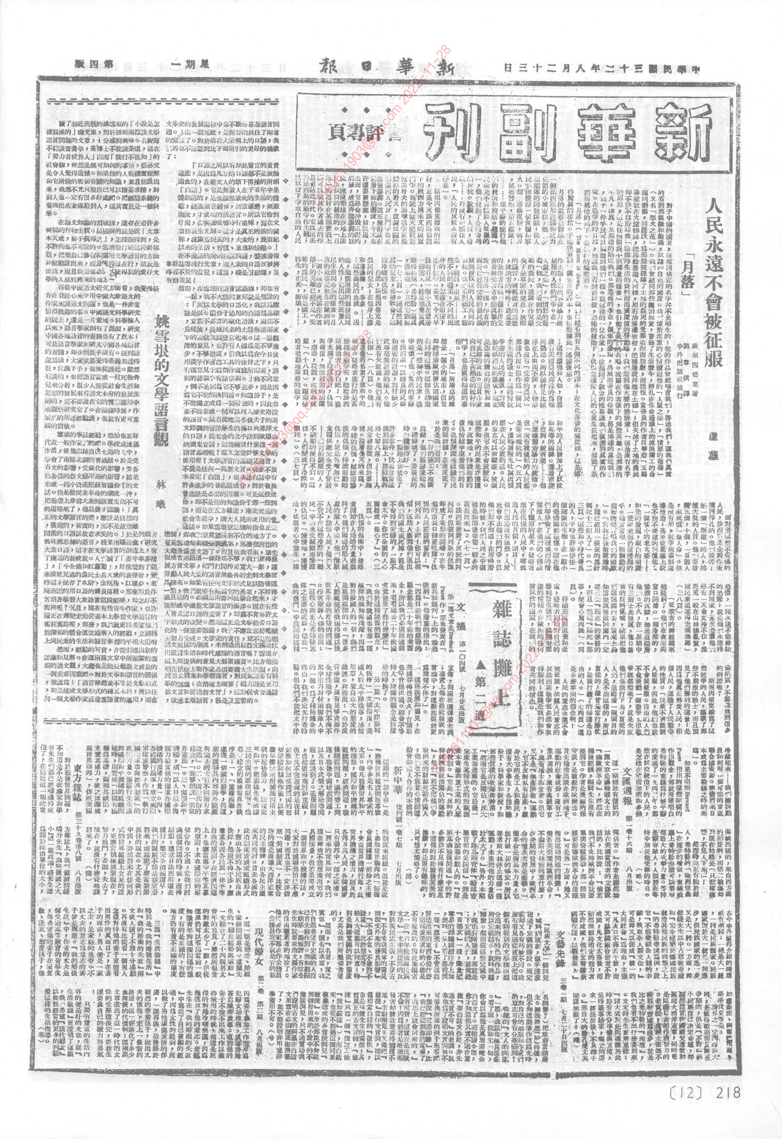 在发展抗日民族统一战线和爱国民主统一战线方面,《新华日报》也做了大量工作。用大量版面,为民主党派和各界知名人士提供一个比较自由的讲坛。冯玉祥将军和郭沫若、茅盾、柳亚子、沈钧儒、黄炎培、邓初民、陶行知、张西曼、胡厥文、胡子昂等学者、教授和社会活动家,经常为此报撰稿。马寅初曾在"友声"专栏发表文章,痛斥国民党的腐败,呼吁"建立一个真正民主的国家"。它的副刊是进步文化运动的重要阵地,团结了一大批优秀的文学艺术和文化工作者。它的国际报导也很有特色。1942年底﹐根据周恩来的指示,开设了"国际述评"专栏,由乔冠华主笔。这个专栏的文章以资料翔实、分析透彻、富于哲理和文采而受到读者欢迎,经常为外国通讯社所转载。