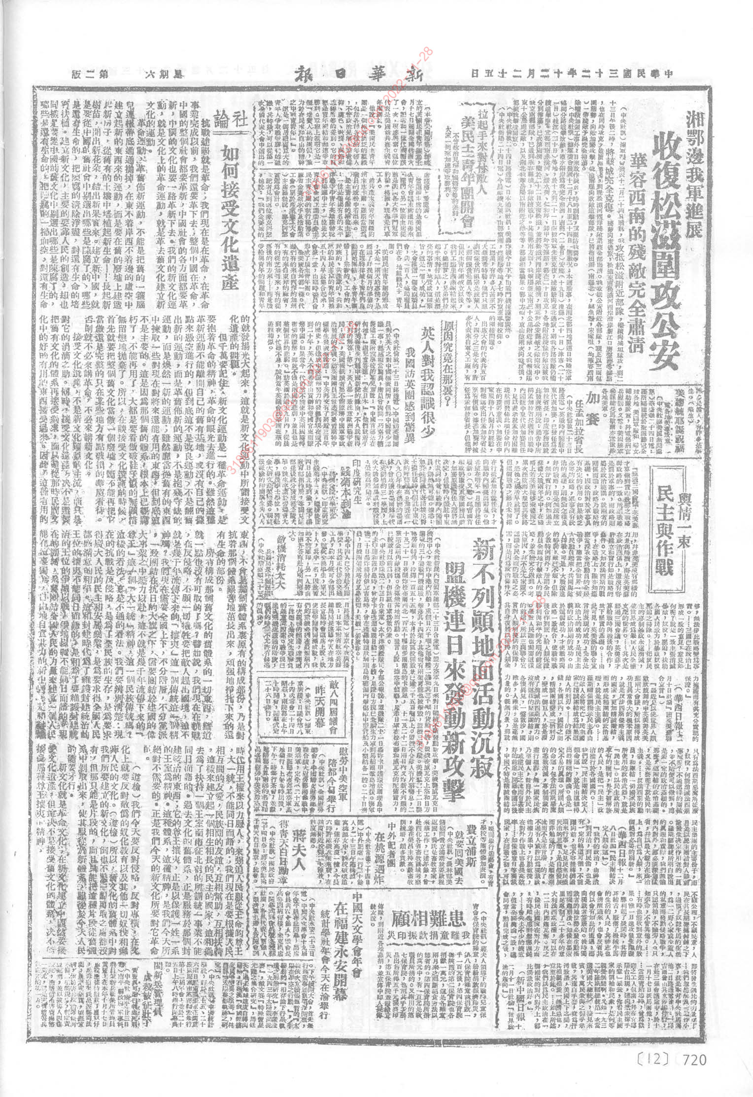 在发展抗日民族统一战线和爱国民主统一战线方面,《新华日报》也做了大量工作。用大量版面,为民主党派和各界知名人士提供一个比较自由的讲坛。冯玉祥将军和郭沫若、茅盾、柳亚子、沈钧儒、黄炎培、邓初民、陶行知、张西曼、胡厥文、胡子昂等学者、教授和社会活动家,经常为此报撰稿。马寅初曾在"友声"专栏发表文章,痛斥国民党的腐败,呼吁"建立一个真正民主的国家"。它的副刊是进步文化运动的重要阵地,团结了一大批优秀的文学艺术和文化工作者。它的国际报导也很有特色。1942年底﹐根据周恩来的指示,开设了"国际述评"专栏,由乔冠华主笔。这个专栏的文章以资料翔实、分析透彻、富于哲理和文采而受到读者欢迎,经常为外国通讯社所转载。