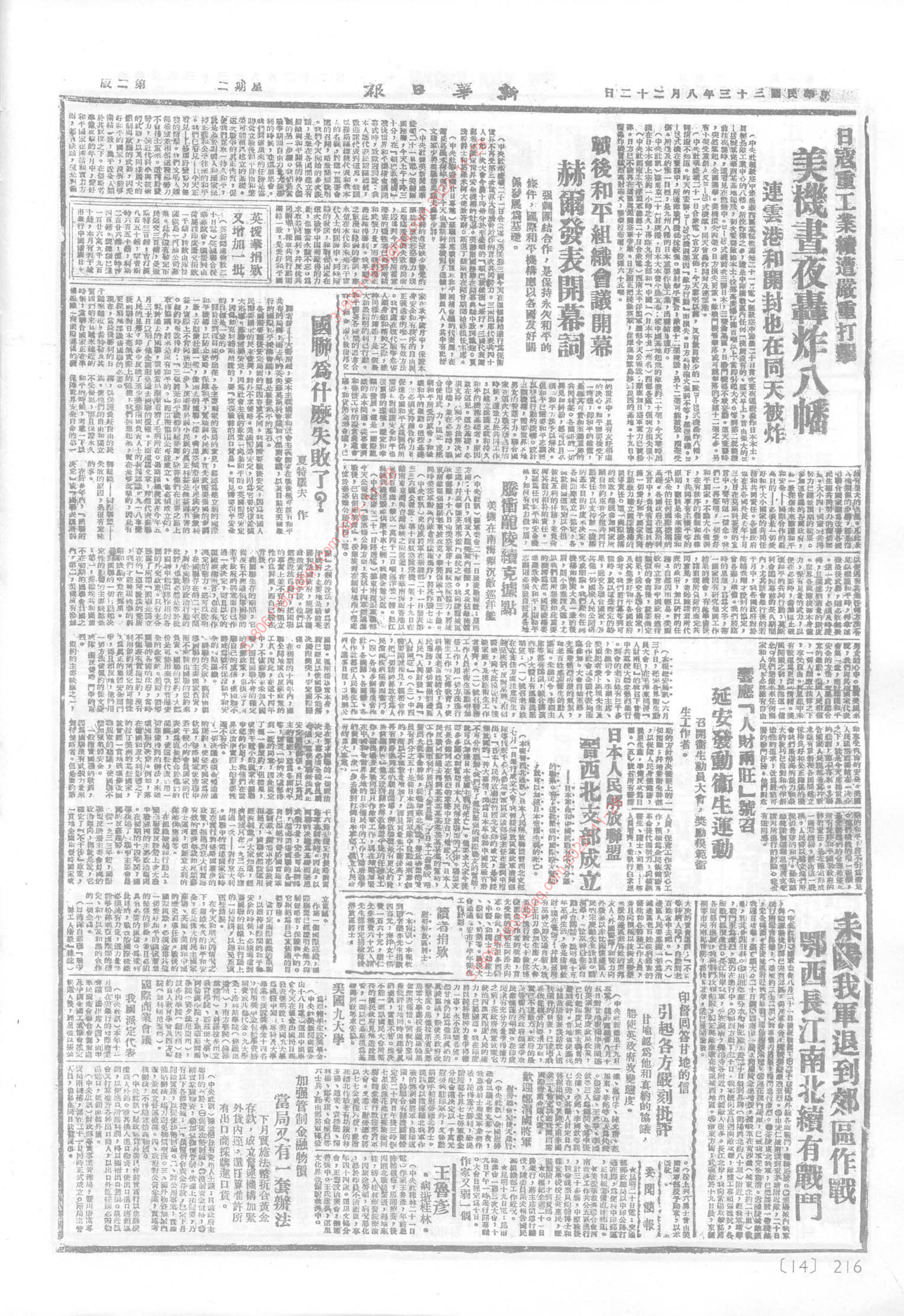 在发展抗日民族统一战线和爱国民主统一战线方面,《新华日报》也做了大量工作。用大量版面,为民主党派和各界知名人士提供一个比较自由的讲坛。冯玉祥将军和郭沫若、茅盾、柳亚子、沈钧儒、黄炎培、邓初民、陶行知、张西曼、胡厥文、胡子昂等学者、教授和社会活动家,经常为此报撰稿。马寅初曾在"友声"专栏发表文章,痛斥国民党的腐败,呼吁"建立一个真正民主的国家"。它的副刊是进步文化运动的重要阵地,团结了一大批优秀的文学艺术和文化工作者。它的国际报导也很有特色。1942年底﹐根据周恩来的指示,开设了"国际述评"专栏,由乔冠华主笔。这个专栏的文章以资料翔实、分析透彻、富于哲理和文采而受到读者欢迎,经常为外国通讯社所转载。