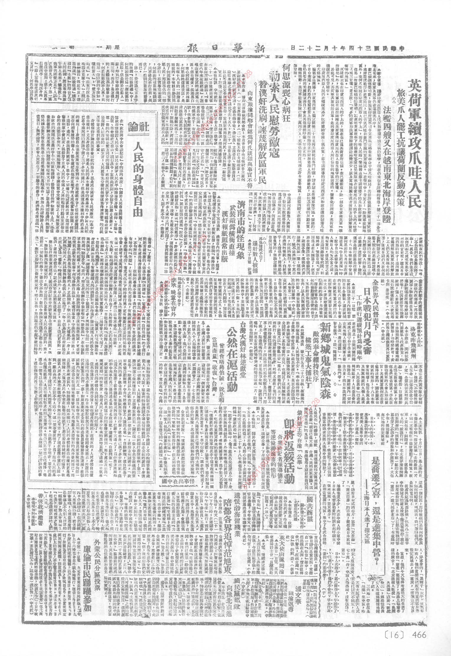 《新华日报》1945年10月22日01